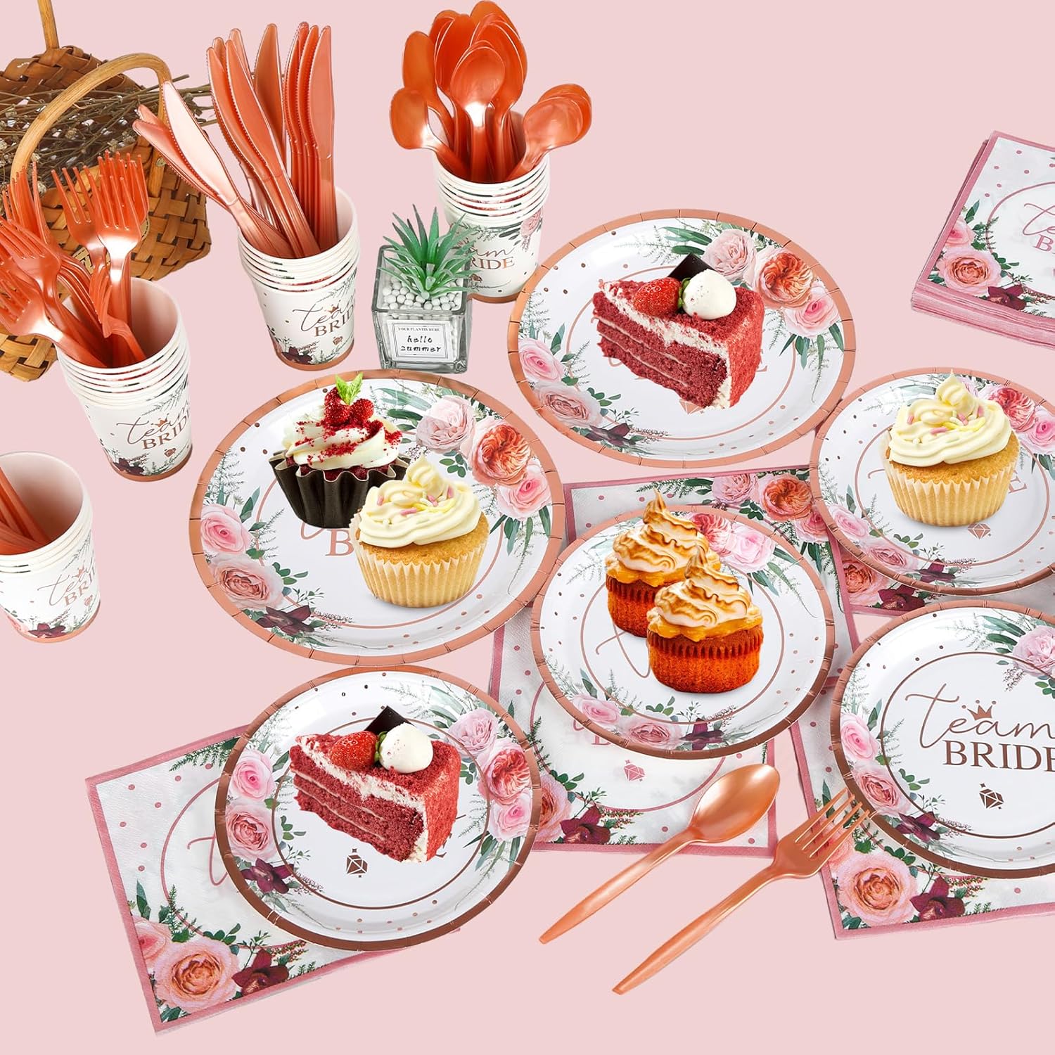 168 PCS Team Bridal Shower Party Supplies Serve 24 Guests Floral Plates and Napkins Disposable Dinnerware Sets for Rose Wedding Engagement Tea Party Bachelorette Decorations