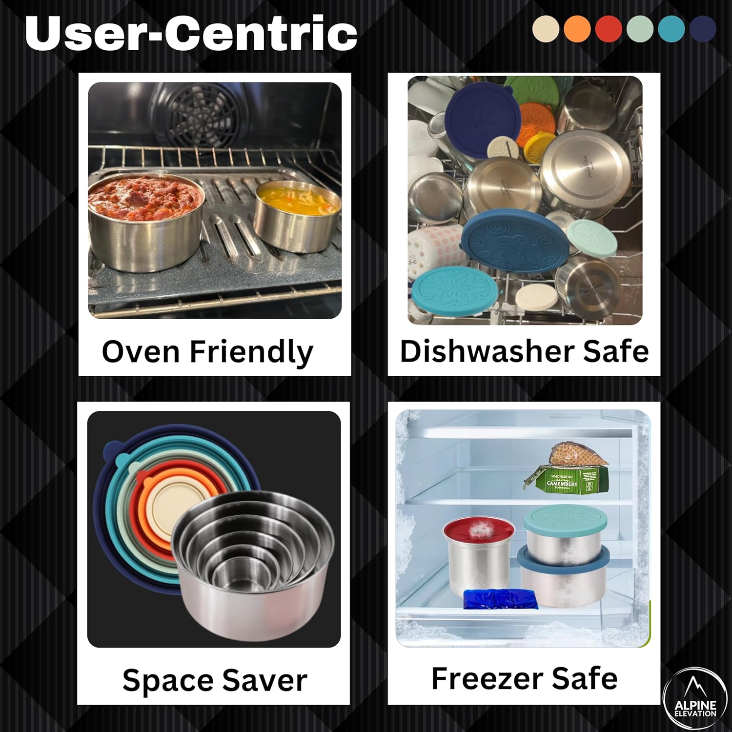 • Ease of Use: Alpine Elevation's stainless steel containers with lids are fridge, freezer, and top-rack dishwasher safe. Their smooth design prevents food from sticking, making cleanup a breeze!