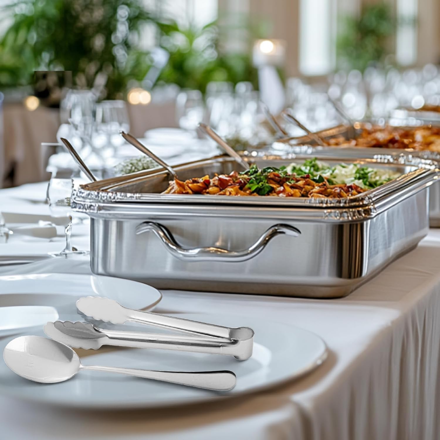 12PCS Stainless Steel Serving Utensils Sets with 8 Large Serving Spoons,4 Serving Tongs,Silver Serving Utensills Sets for Buffet Catering Banquet Party (Silver)