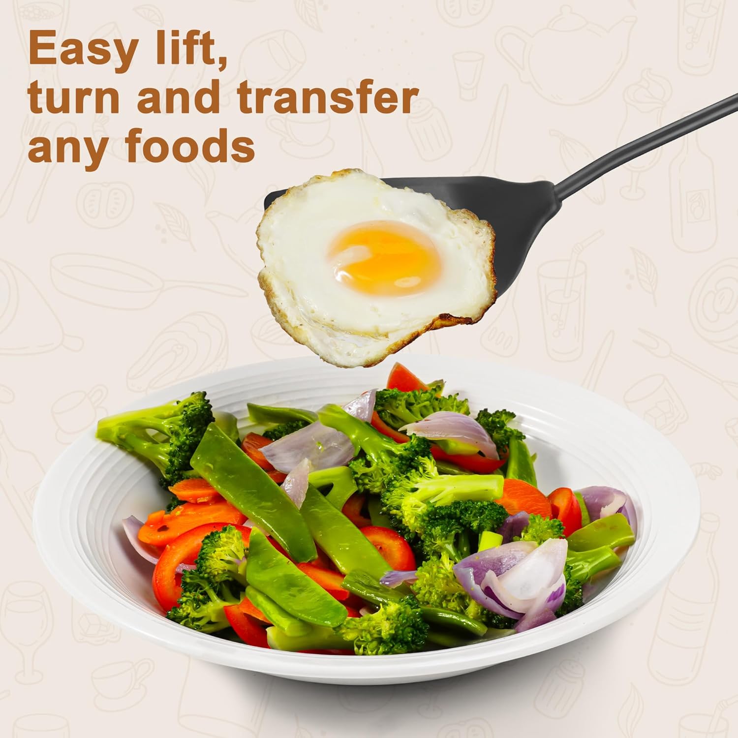 • Easy to clean silicone spatula : Black silicone will not leave food grease ; round hanging hole also makes it easy to dry and hang