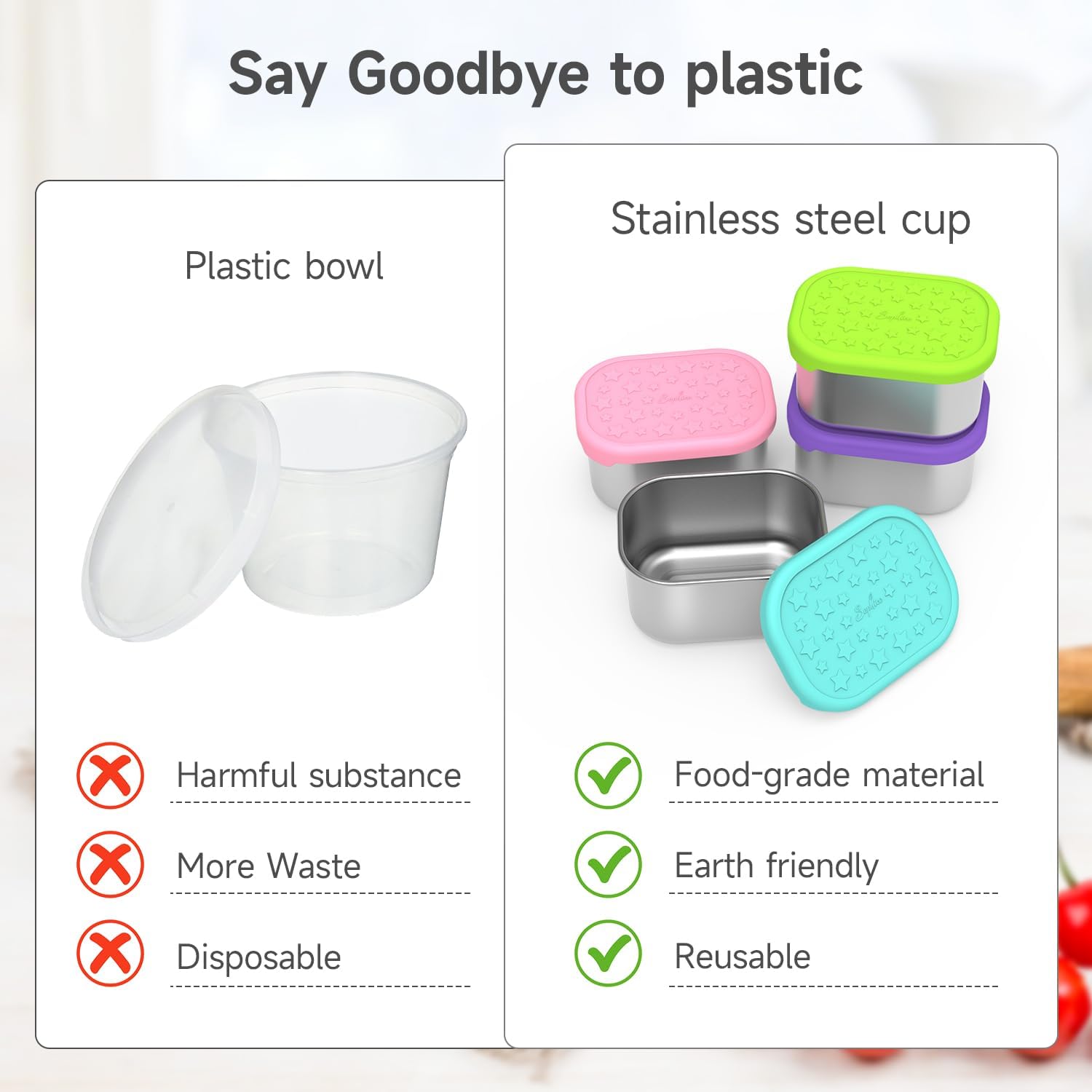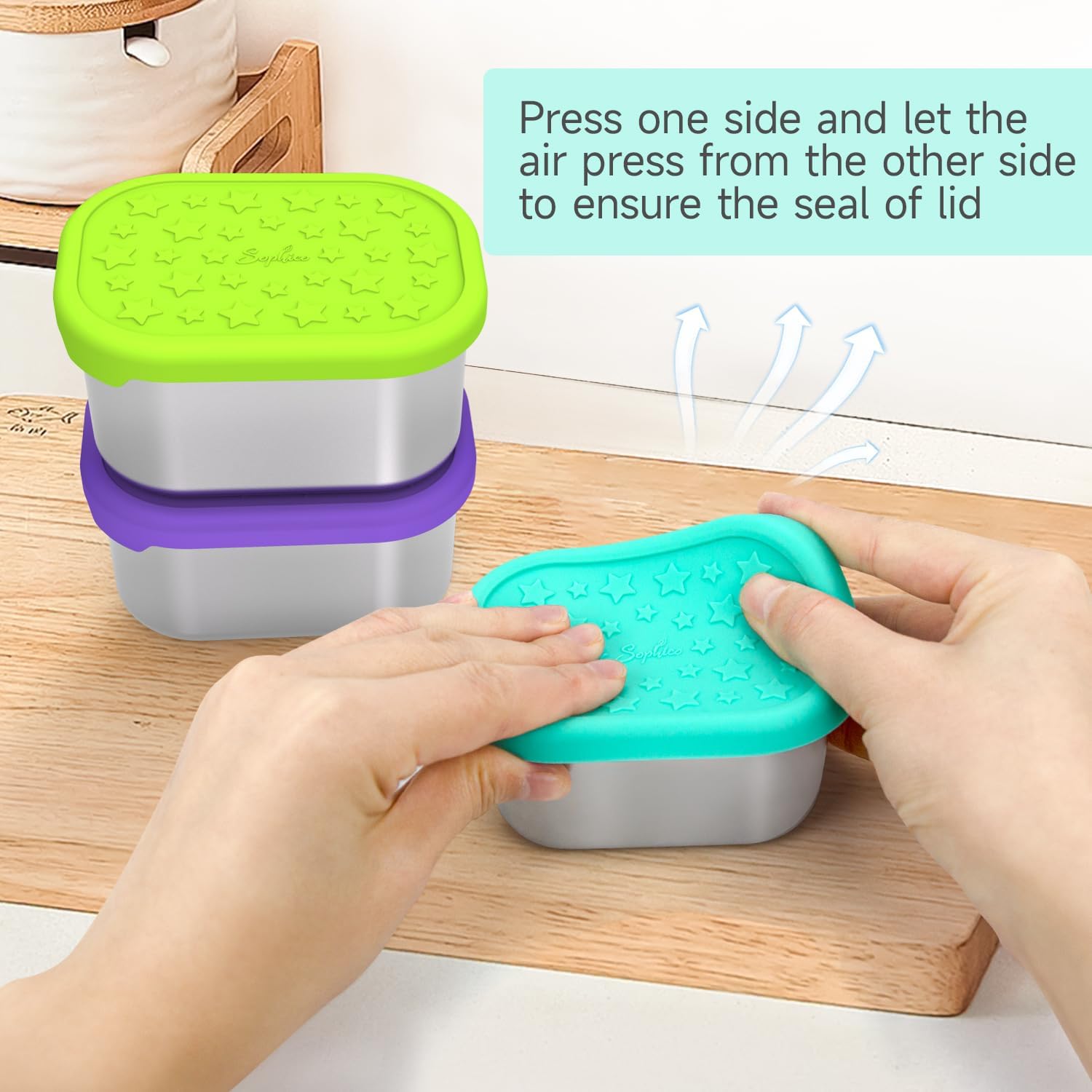 • Food-Grade Material: SOPHICO stainless steel snack containers are made from high-quality 18/8 stainless steel and 100% food-grade silicone. To ensure the standard of our products, the containers comply with CPSC standard by a series of tests. CPSC certified BPA free and non-toxic. Safe, durable and eco-friendly, you can use it without worry.