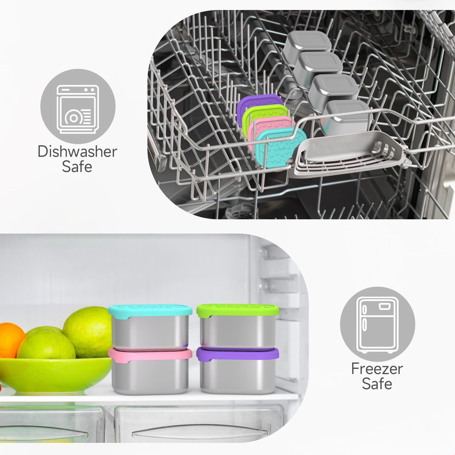 SOPHICO Stainless Steel Snack Containers for Kids, 8 oz Small Food Storage Container 1 Cup with Silicone Lid - Perfect 304 Metal Toddler Lunch Box for Daycare and School, Leak Proof (MIX, 4 PACK)