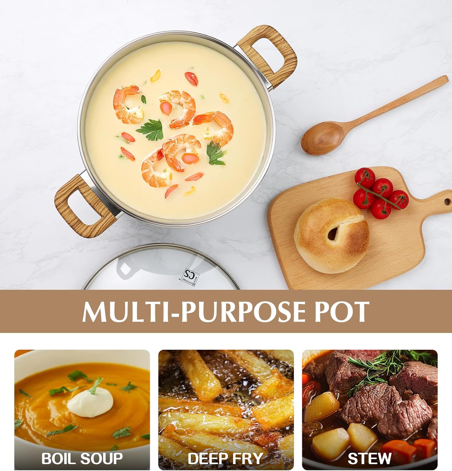 KOCH SYSTEME CS Stainless Steel Pot - 8 Quart Stainless Steel Stock Pot with Visible Lid, Steel Soup Pots with Heat-Resistant Bakelite Double Handle, Dishwasher Safe, Induction Compatible, 8QT