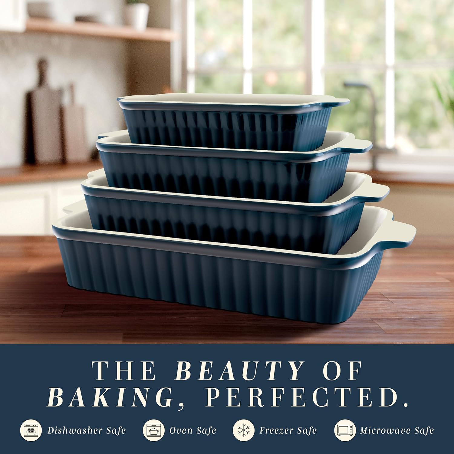 • Versatile 4-Piece Ceramic Casserole Dish Set – Includes 4 baking dishes in assorted sizes, perfect for casseroles, lasagna, roasted veggies, baked pasta, and desserts. Ideal for family dinners, potlucks, and everyday baking.