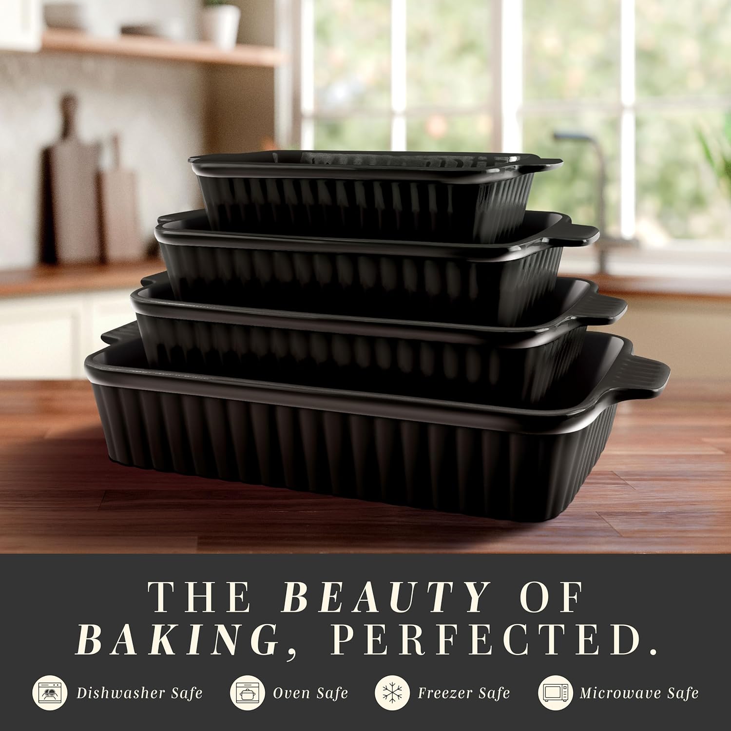 • Versatile 4-Piece Ceramic Casserole Dish Set – Includes 4 baking dishes in assorted sizes, perfect for casseroles, lasagna, roasted veggies, baked pasta, and desserts. Ideal for family dinners, potlucks, and everyday baking.
