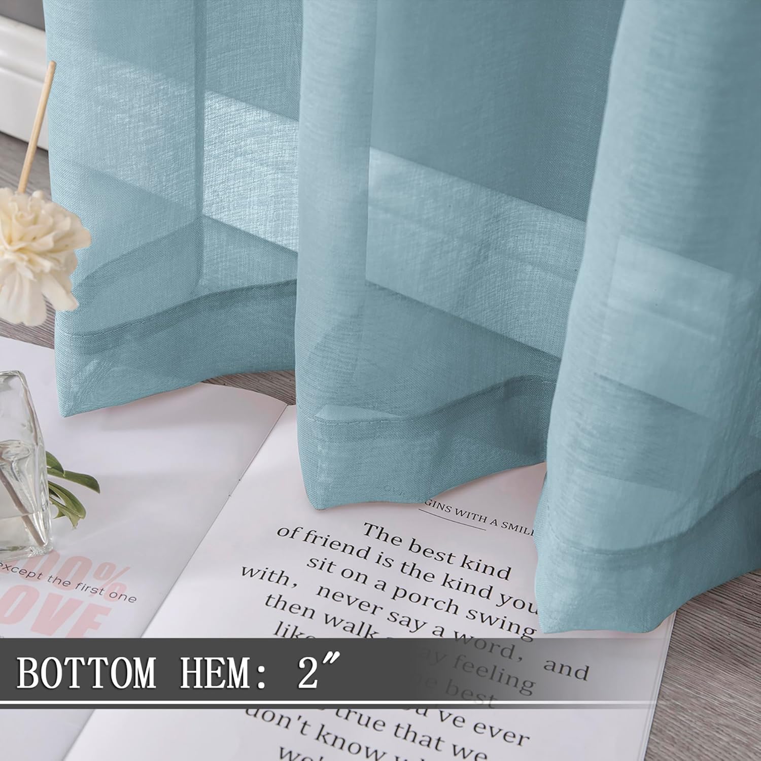 Tollpiz Short Sheer Curtains Linen Textured Living Room Curtain Sheers Light Filtering Rod Pocket Voile Curtains for Bedroom, 42 x 45 inches Long, Dusty Blue, Set of 2 Panels