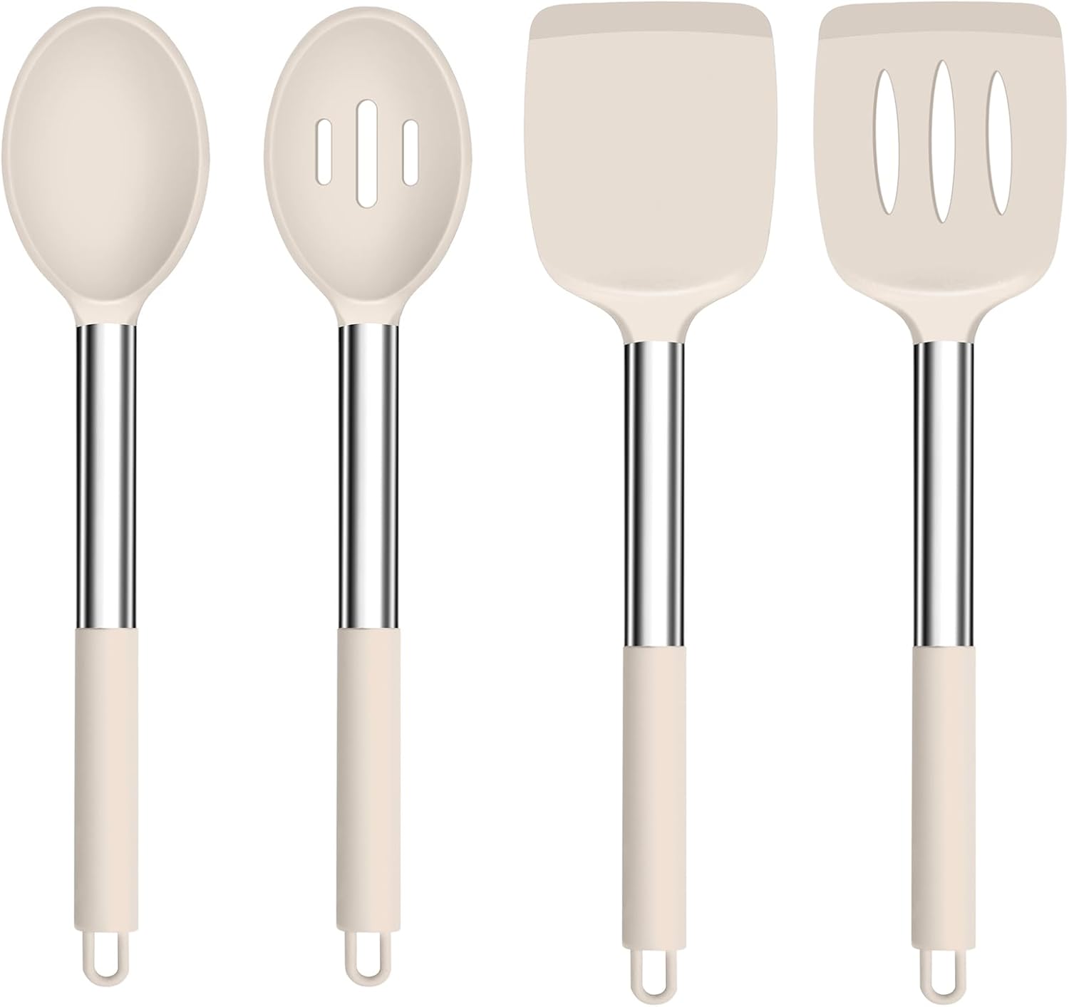 TeamFar Kitchen Utensils, 4 PCS Silicone Cooking Utensils Spatula Spoon Set with Stainless Steel Handle, for Frying Mixing Draining Turning, Healthy & Heat-proof, Non-stick & Dishwasher Safe - Khaki