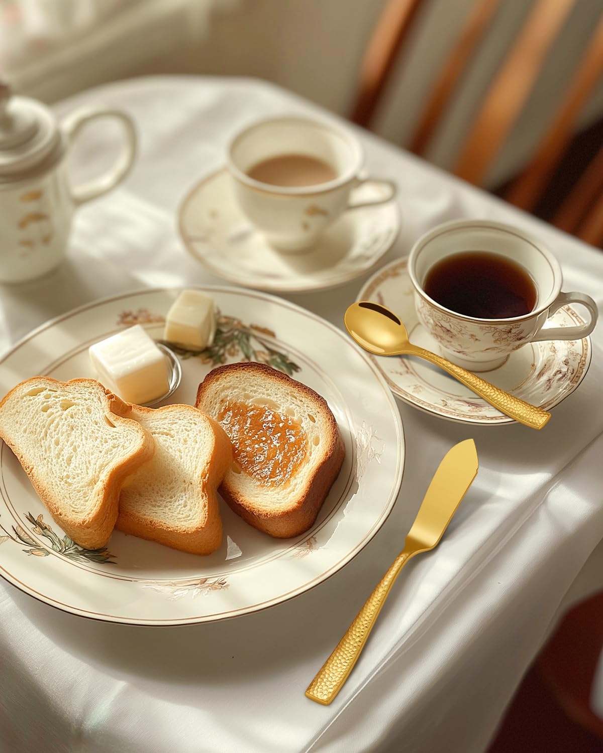 • Premium Heavy Duty Crafted: Gold Flatware Set made of thick gauge food-grade stainless steel offers durability, rust&corrosion resistance. Enhanced by the advanced hot forged process to strengthen durability, never bends or chips in daily use, ensuring the longest-term value and optimal performance for using