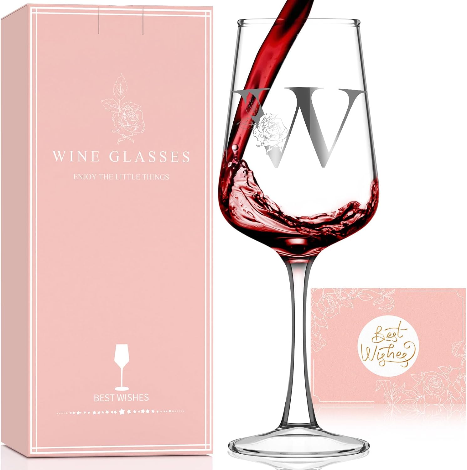 Personalized Wine Glass Gifts for Women - Monogrammed A-Z Wine Glasses Gift | Custom Christmas Gift, Valentines Day, Birthday Gifts for Women Her Mom Wife Best Friend Sister (W)