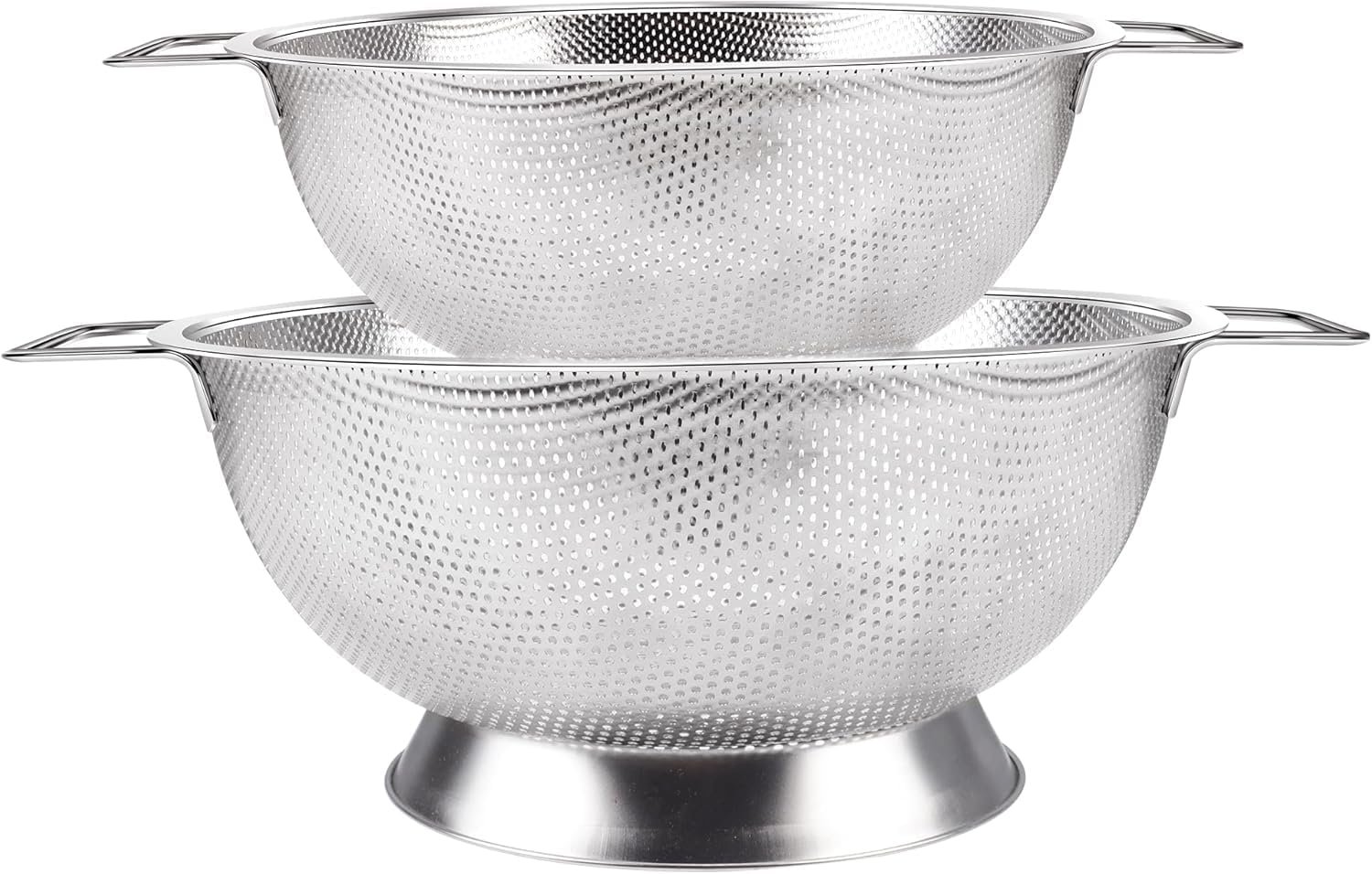 Kaishun Colander Stainless Steel Set(5-Quart and 3-Quart), Kitchen Strainer for Pasta, Fruits Vegetables, Dishwasher Safe