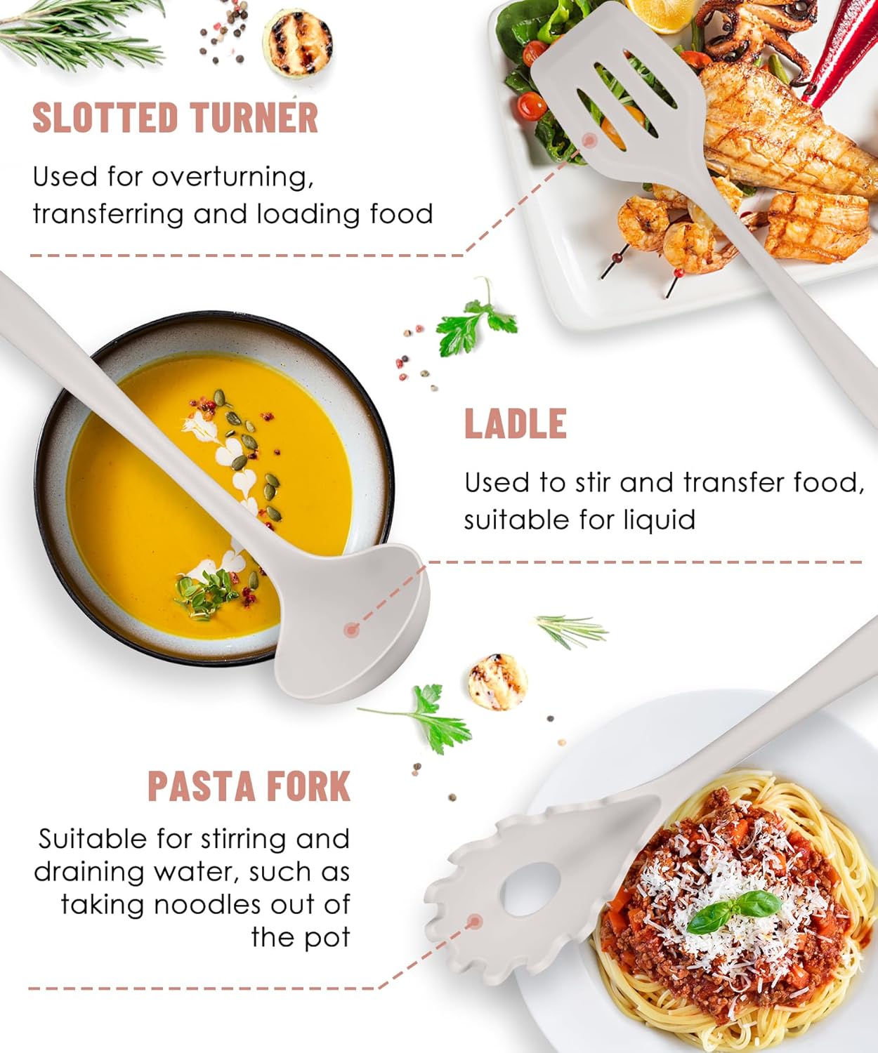 • ❤【Food Grade Safe Silicone】Odorless food-grade silicone each utensil is made of food-grade silicone, can use in any type of food.A set of excellent cooking utensils is related to the health of you and your family, so we choose stricter materials and quality inspection. Tips We recommend soaking them for half an hour before first use, and then exposing them to air for about 3 hours to eliminate the original odor.