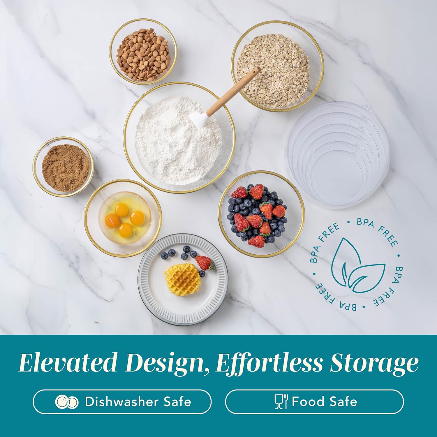 • Stylish Gold Rimmed Bowls: Eye-catching gold colored rim, add a pop of style to your kitchen while keeping food fresh and securely sealed with a leakproof design.