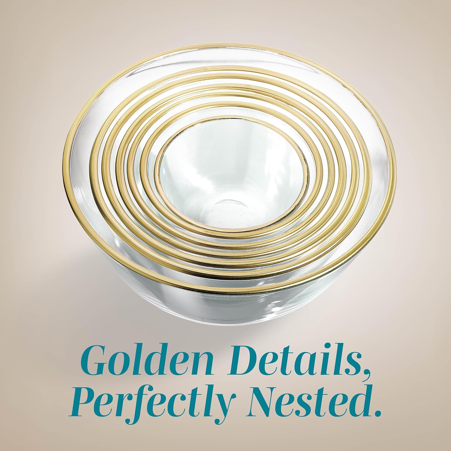 COOK WITH COLOR 12 Pc Glass Mixing Bowl Set with Lids – Borosilicate Glass Nesting Bowls for Cooking, Baking and Meal Prep, Gold Rim