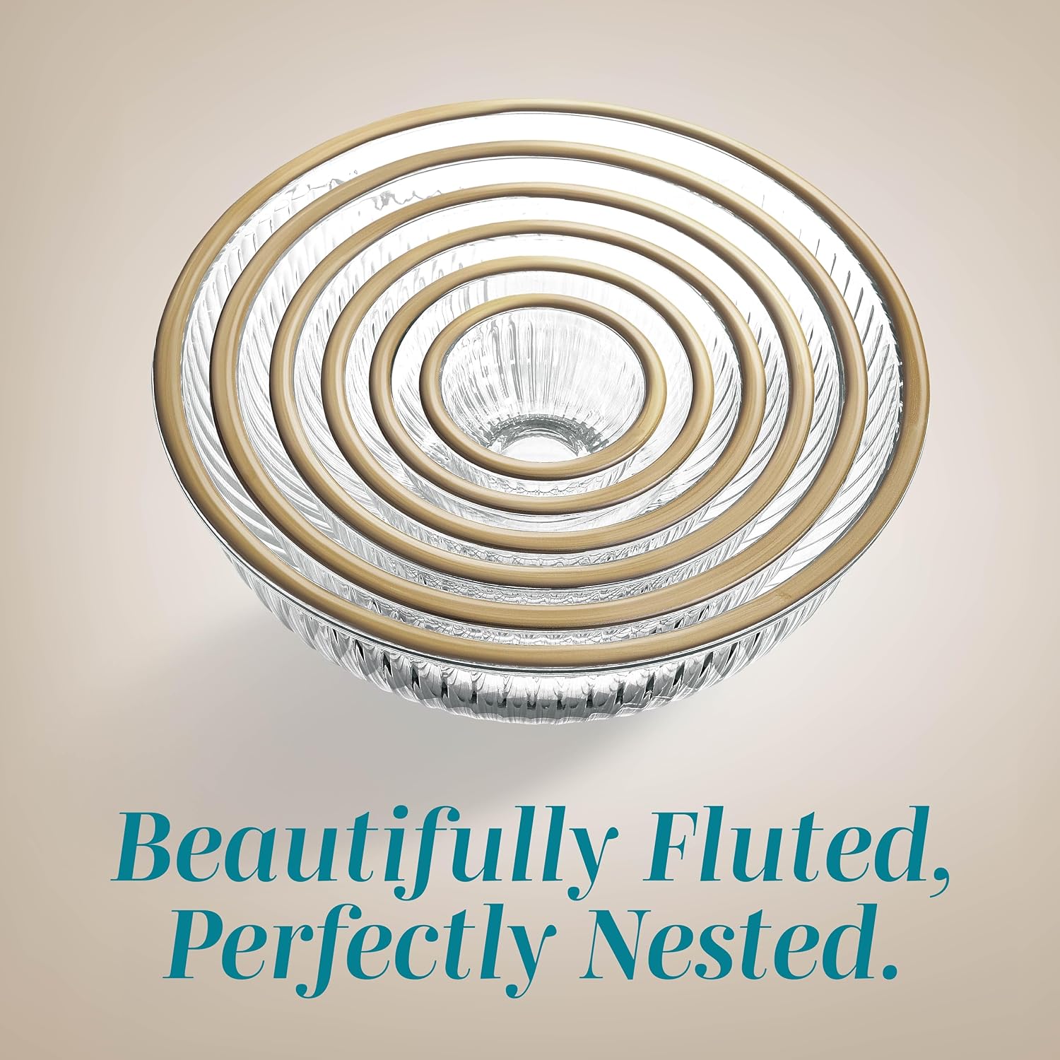 COOK WITH COLOR 12 Pc Glass Mixing Bowl Set with Lids – Borosilicate Glass Nesting Bowls for Cooking, Baking and Meal Prep, Fluted with Gold Rim