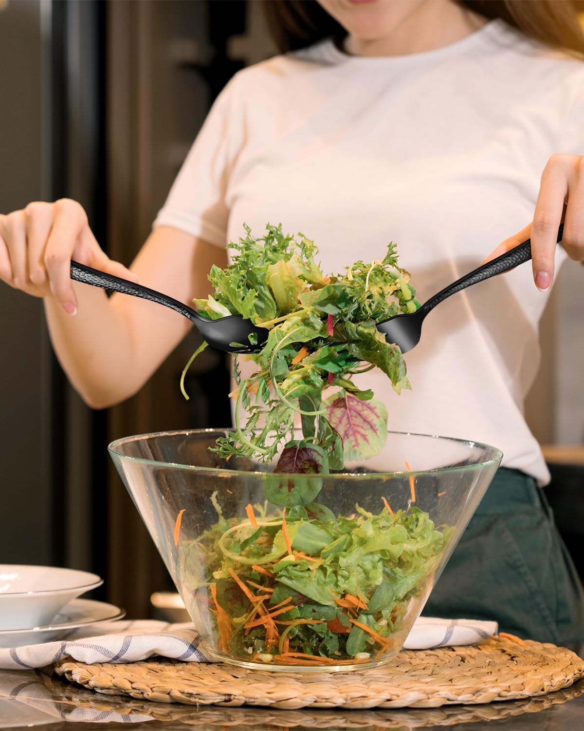 • METICULOUSLY CRAFTED: Each black serving set handle with specially unique hammered pattern detail, and elegant curves and features a mirror-polished finish that makes it eye-catching and makes a lasting impression, providing the perfect refined complement to your dining occasions and culinary creations