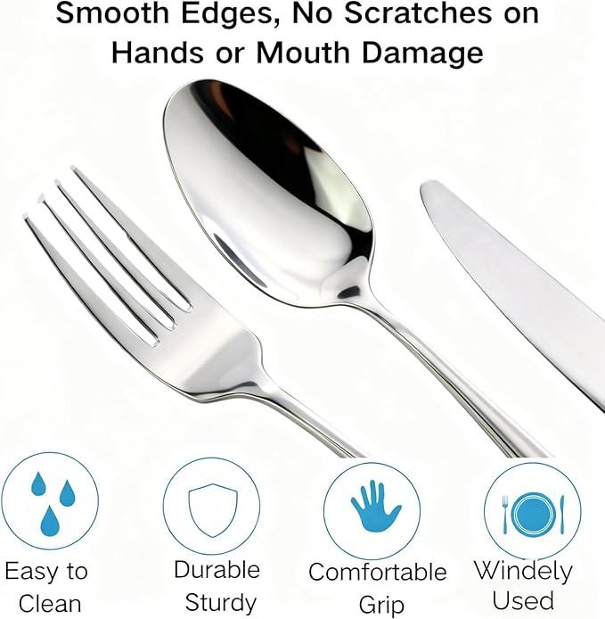 • 36 piece silverware set includes: 6 knives, 6 forks, 6 spoons, 6 teaspoons, 6 dessert forks, and 6 butter knives, making it perfect for daily use, home, kitchen, restaurant, and more. Suitable for 6 people, providing ample dining options for gatherings