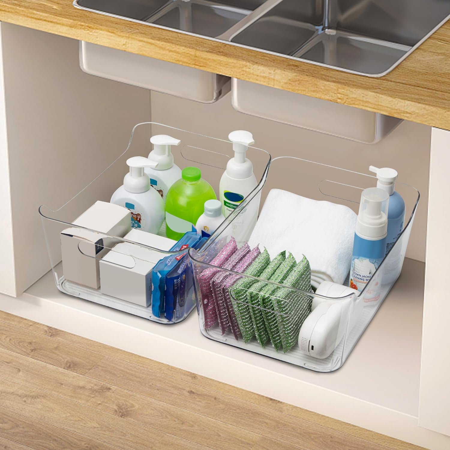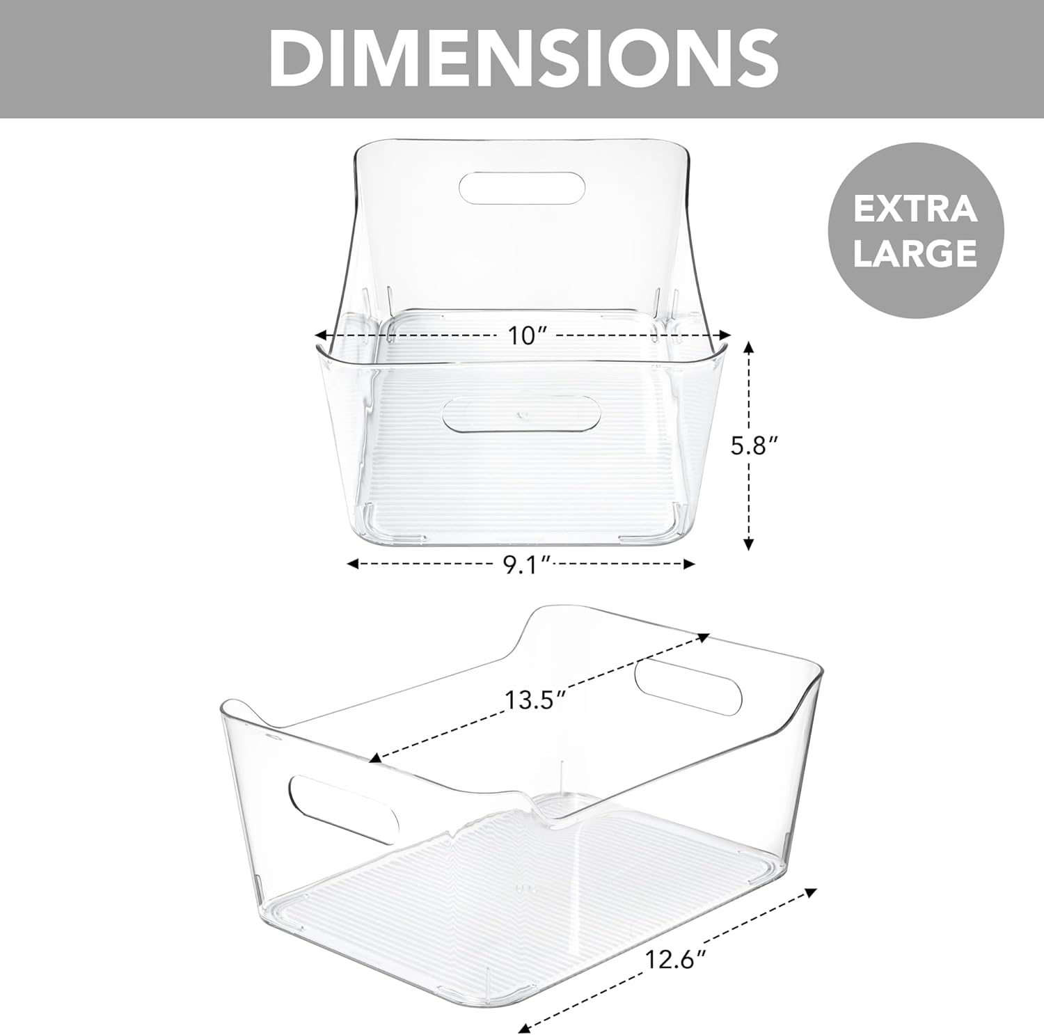 Tiawudi 4 Pack Plastic Storage Bins, Extra Large Pantry Organizer, 13.5" x 10" Clear Storage Containers and Organizer Bins, Multi-Use Bins for Home, Kitchen, Closet and Cabinet