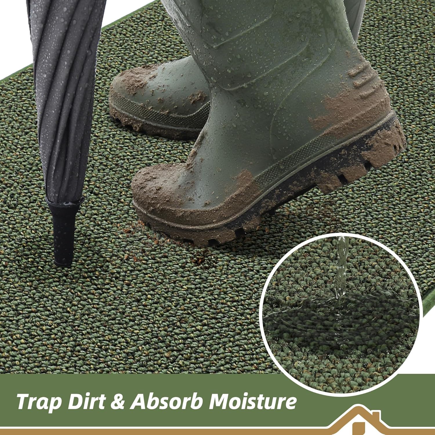 BEQHAUSE Dirt Trapper Door Mat 32" x 48", Non-Slip Washable Doormats Entrance Mat, Dirt Resistant and Absorbent Welcome Mat, Low Profile Floor Mats for Front Back Door and Entryway, Green