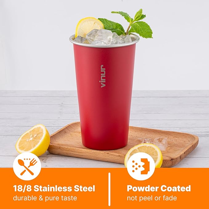VINUR 20 oz Stainless Steel Cups 4 Pack Pint Tumbler Stackable Metal Drinking Glasses for Travel, Camping, Outdoors (Purple-Orange-Sky Blue-Canyon Red)