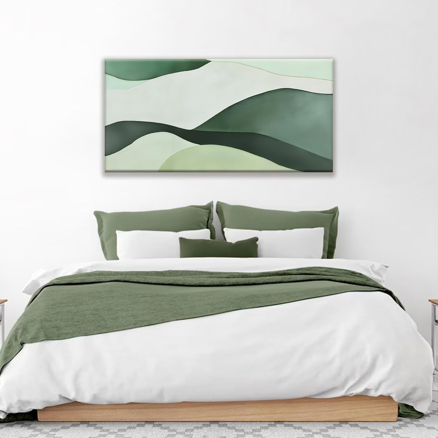 Suconvng Abstract Canvas Art Wall Decor Green White Wall Art Irregular Shapes Painting Abstract Art Prints Minimalist Decor Artwork For Bedroom Kitchen Office Bathroom Wall Art 20"×40"