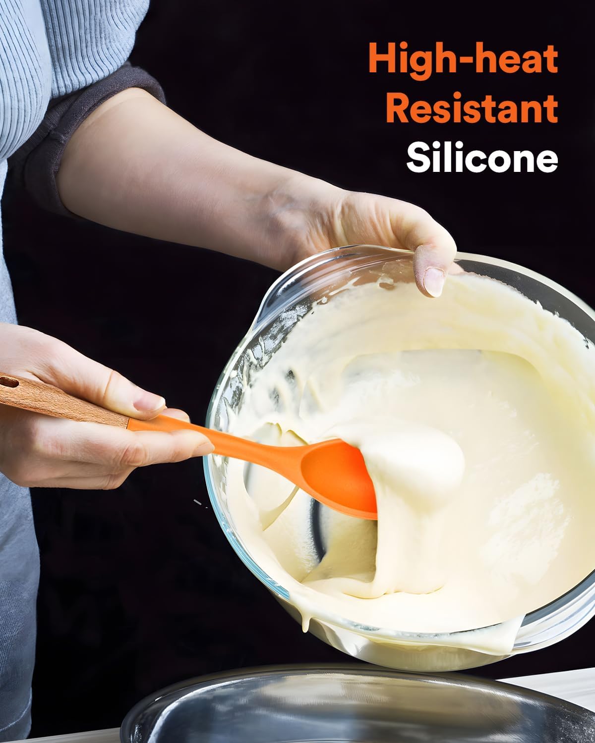 • Heat Resistant Spoon: Our wooden silicone spoon made of food grade silicone and High-quality Wood. BPA free and will not rust. Even at 446℉, you don't have to worry about melting or deformation