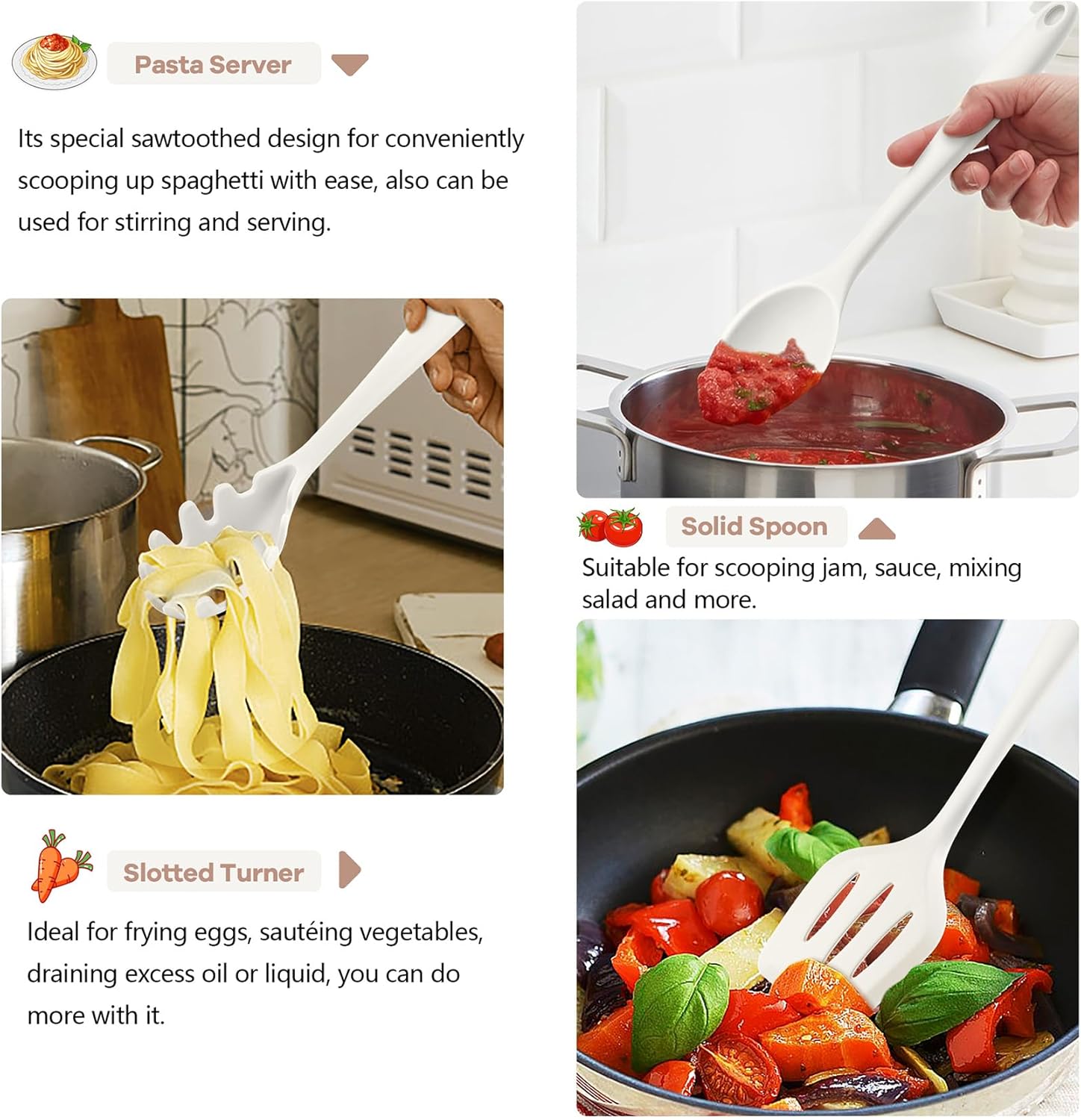 • FOOD GRADE AND SAFE SILICONE - This kitchen utensils are made of high-end, food grade silicone, non-toxic and won’t react with food to release harmful substance, Safe for preparing any type of food and enjoy the funny cooking experience