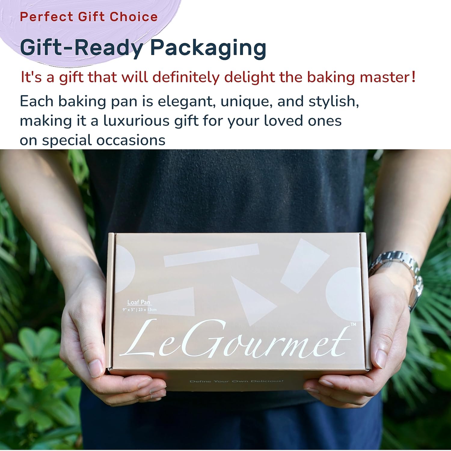LeGourmet Nonstick Bread Loaf Pan 9 X 5 Inch, Ceramic Coating, Non-Toxic, Rust Resistant Aluminized Steel, Perfect 1 lb Baking Dish for Meatloaf, Pound Cake & Brownie (Butter 2pcs)