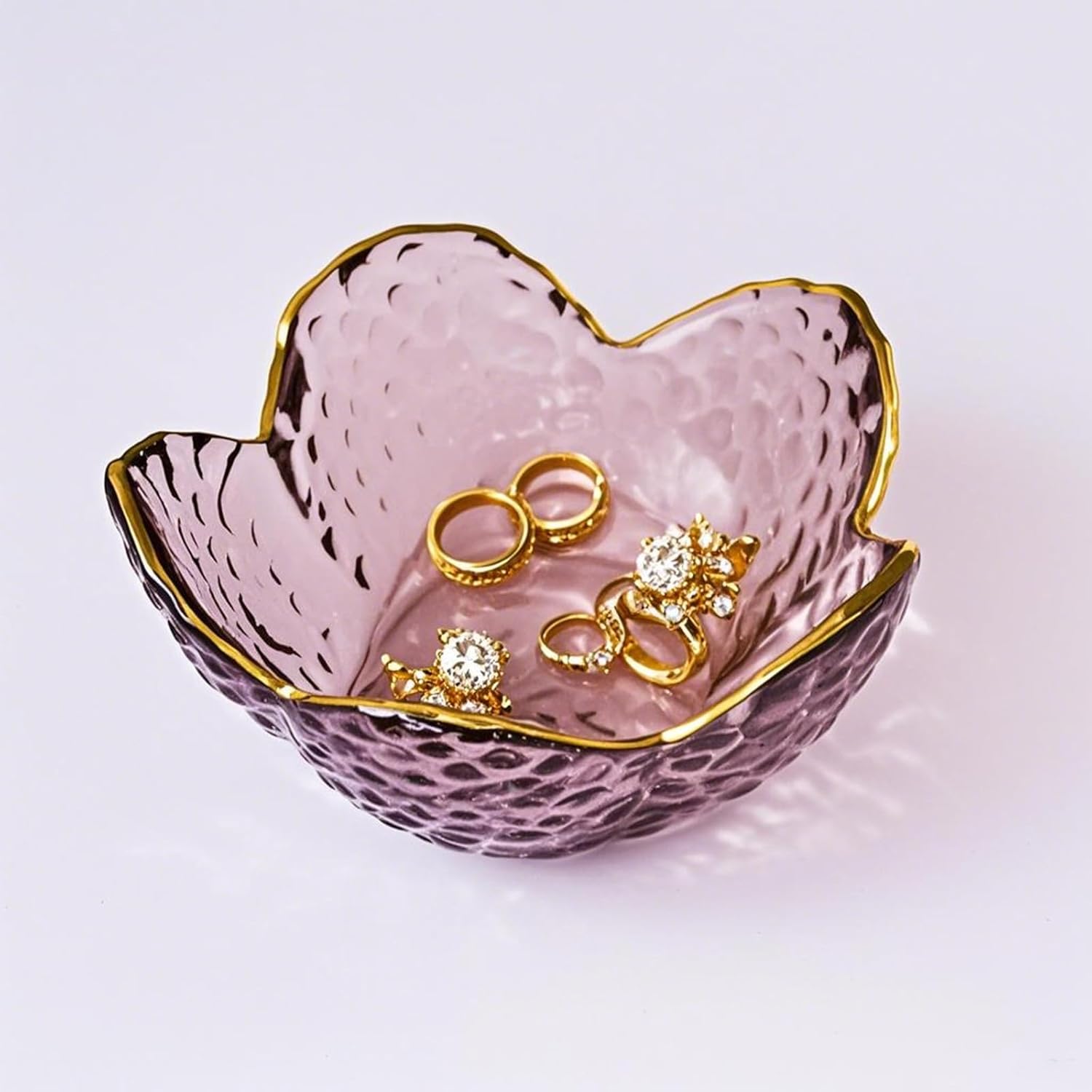 • ELEGANT DESIGN: Beautiful crystal glass jewelry dish featuring a delicate flower pattern, perfect for displaying and organizing rings, earrings, and small trinkets