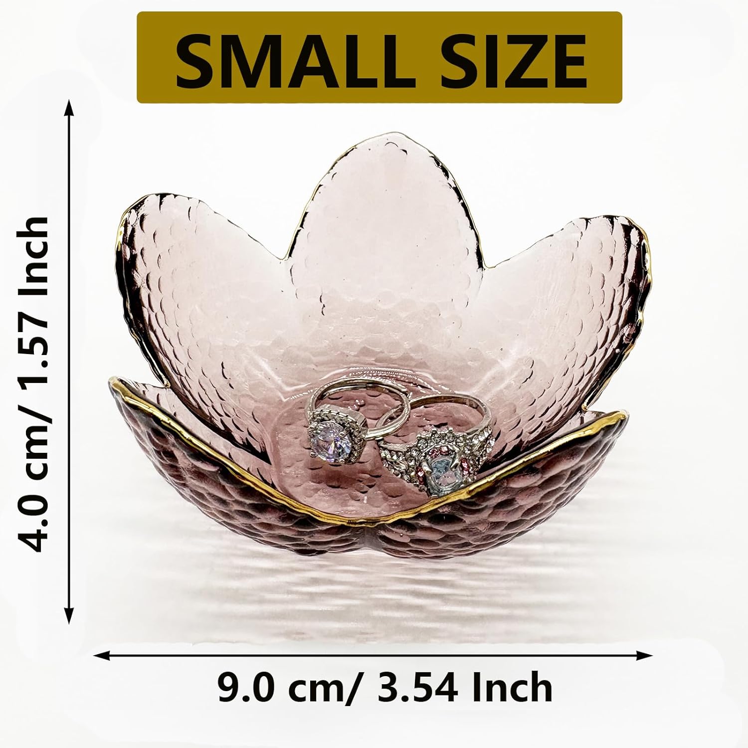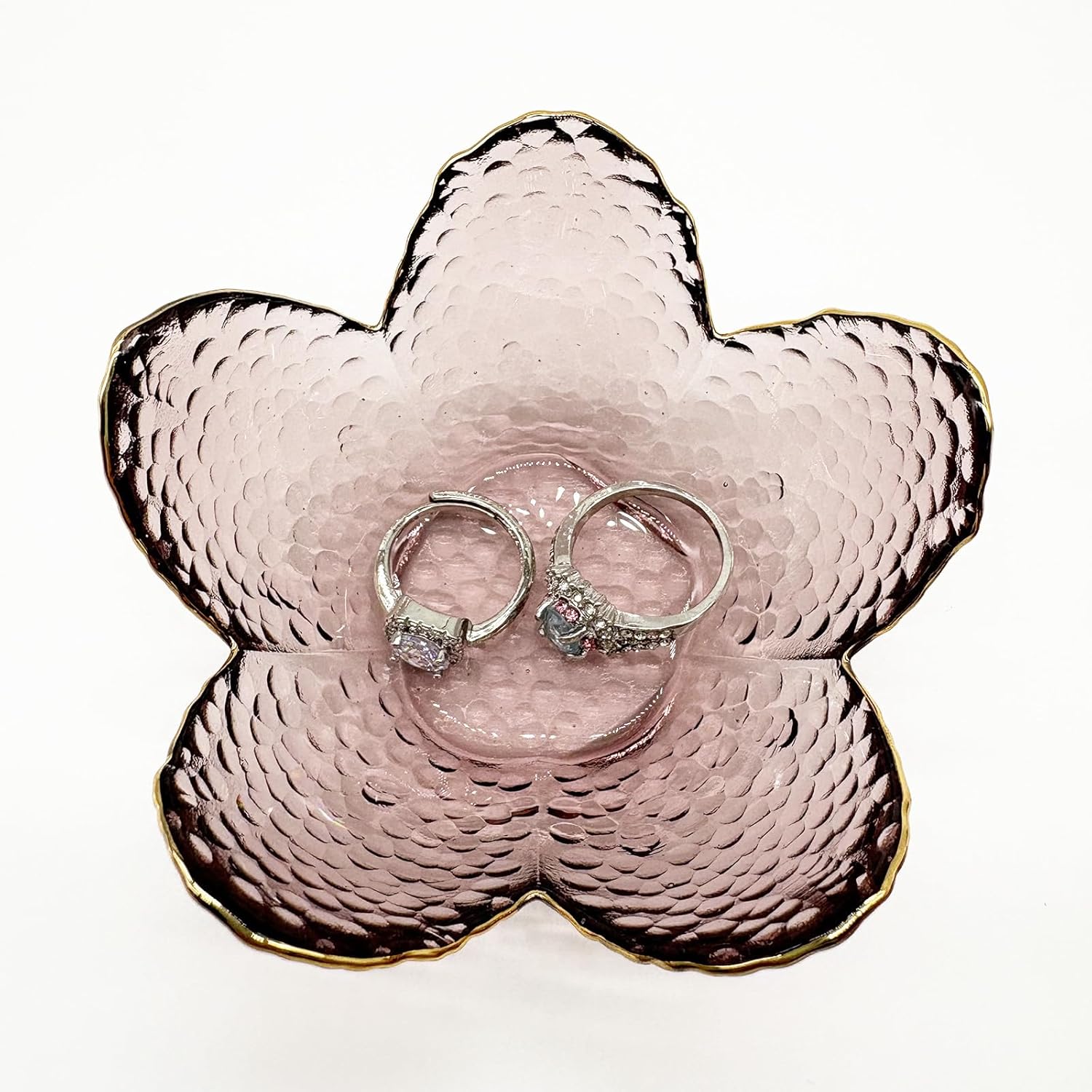 Small Pink Glass Jewelry Dish Tray, Bathroom Jewlery Tray, Flower Ring Dish Jewlry Plate, Crystal Engagement Jewerly Ring Holder for Women, Nightstand Decor Trinket Jewelry Bowl Gift for Mom