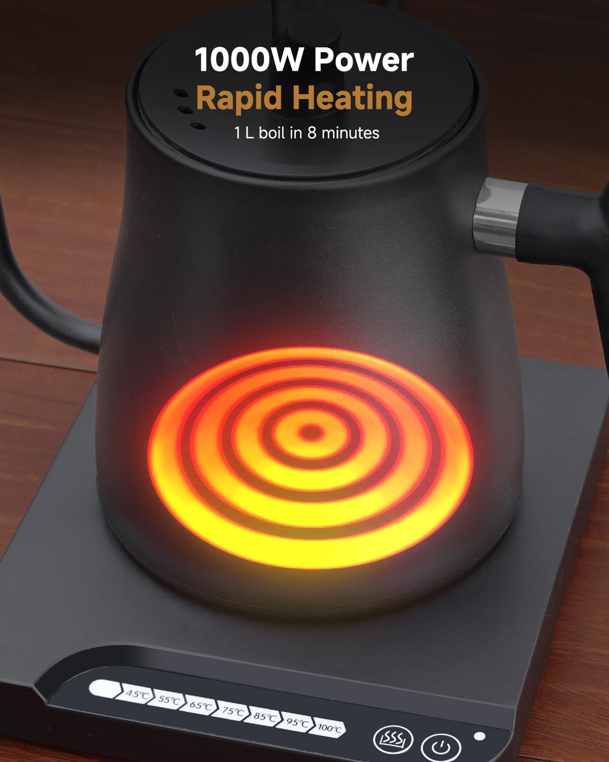 • 【Versatile Use】The gooseneck electric kettle is ideal for brewing coffee,tea,and more,and the electric kettle's versatile design meets everyday beverage heating needs