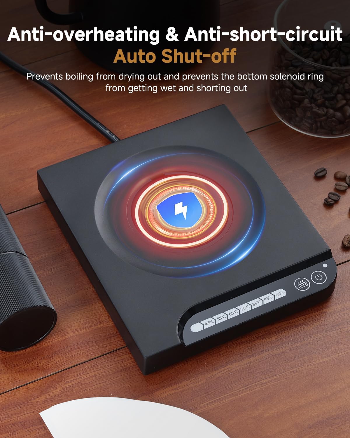 • 【Smart 7-Stage Temperature Control】Temperature adjustment from 45°C to 100°C with memory function.Divided into 7 levels of electric kettle temperature control,it allows you to be more precise with the temperature level when making hot drinks.Safety design includes overheat protection and an automatic shut-off function for this hot water kettle electric,ensuring 24/7 reliability
