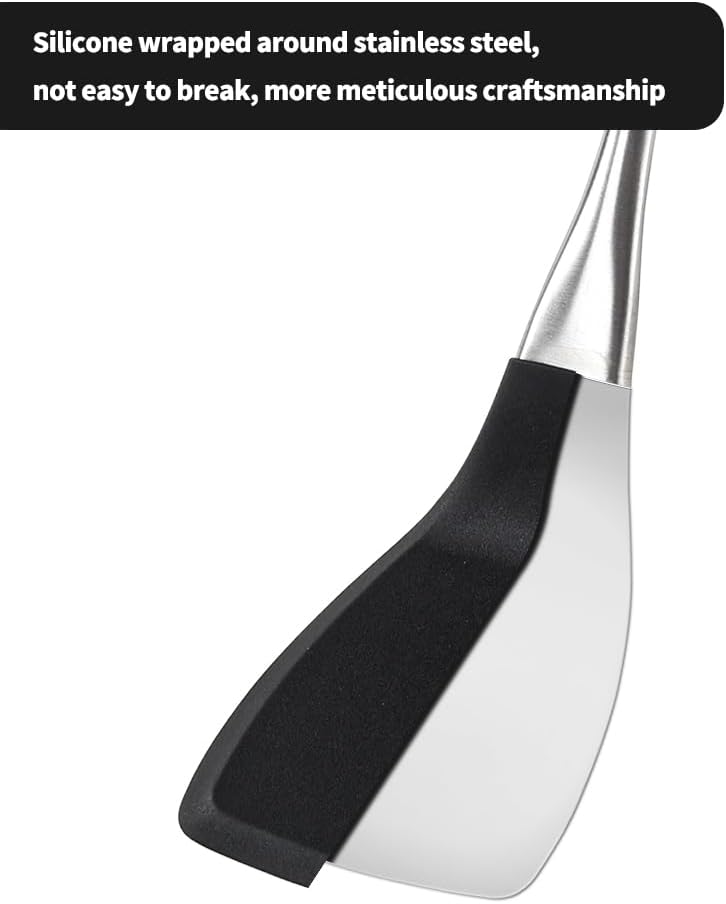 • Our silicone shovel is wrapped around stainless steel with silicone. Compared to other products, our silicone shovel is more sturdy and focuses more on quality even with thinner edges