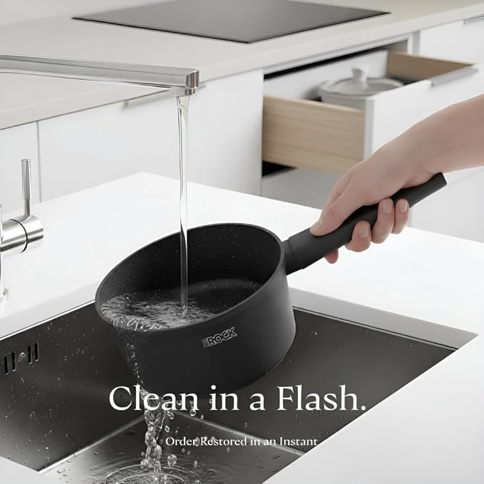 THE ROCK SOHO Nonstick Saucepan with Lid, 2 Quarts Small Pot with PPG Quantum2 Coating – Durable for Urban Kitchens, Nothing Sticks, Never Warps, Lasts Longer, Induction Compatible, PFOA-Free, Black