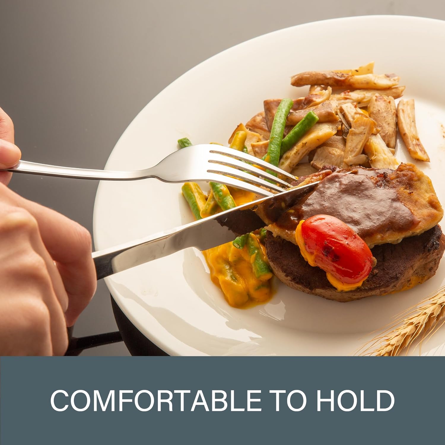 • ERGONOMIC COMFORT: Well-balanced utensils with comfortable grip handles ensure easy handling during meals