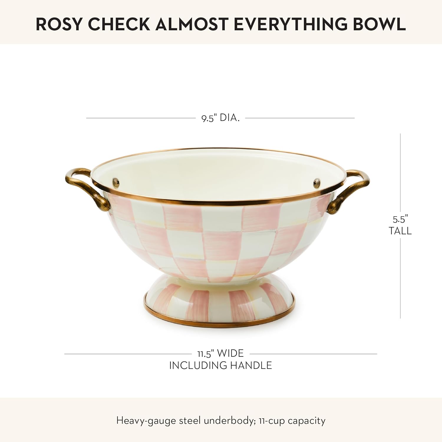 MACKENZIE-CHILDS Enamel Bowl, Serving Bowl for Entertaining, Almost Everything Bowl, Medium, Pink-and-White Rosy Check