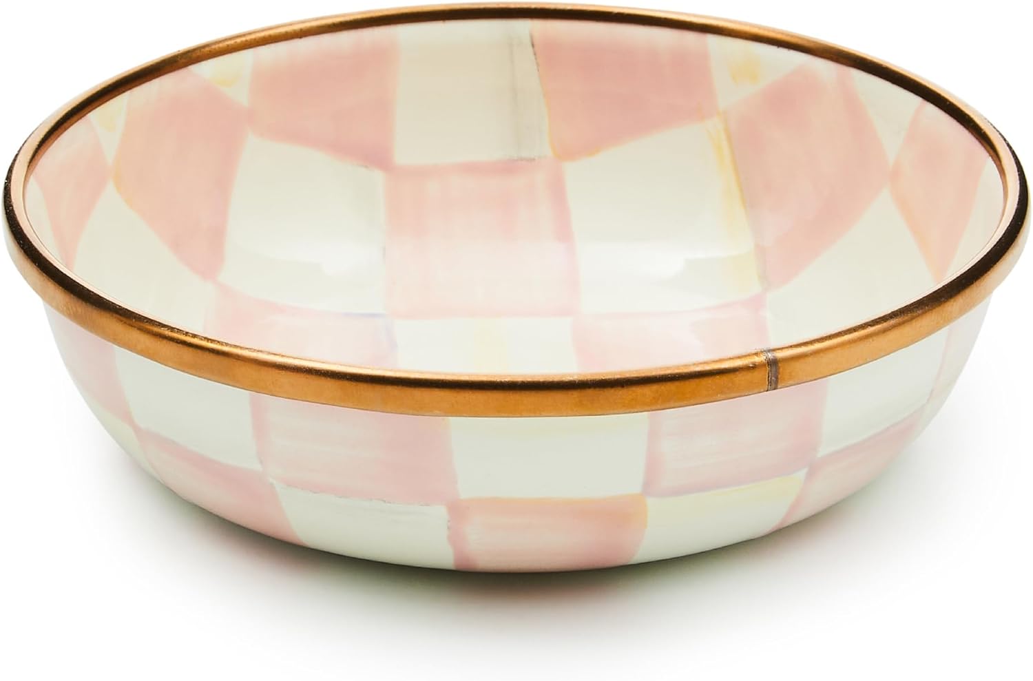 MACKENZIE-CHILDS Enamel Dipping Bowl, Small Serving Bowl for Entertaining, Pink-and-White Rosy Check
