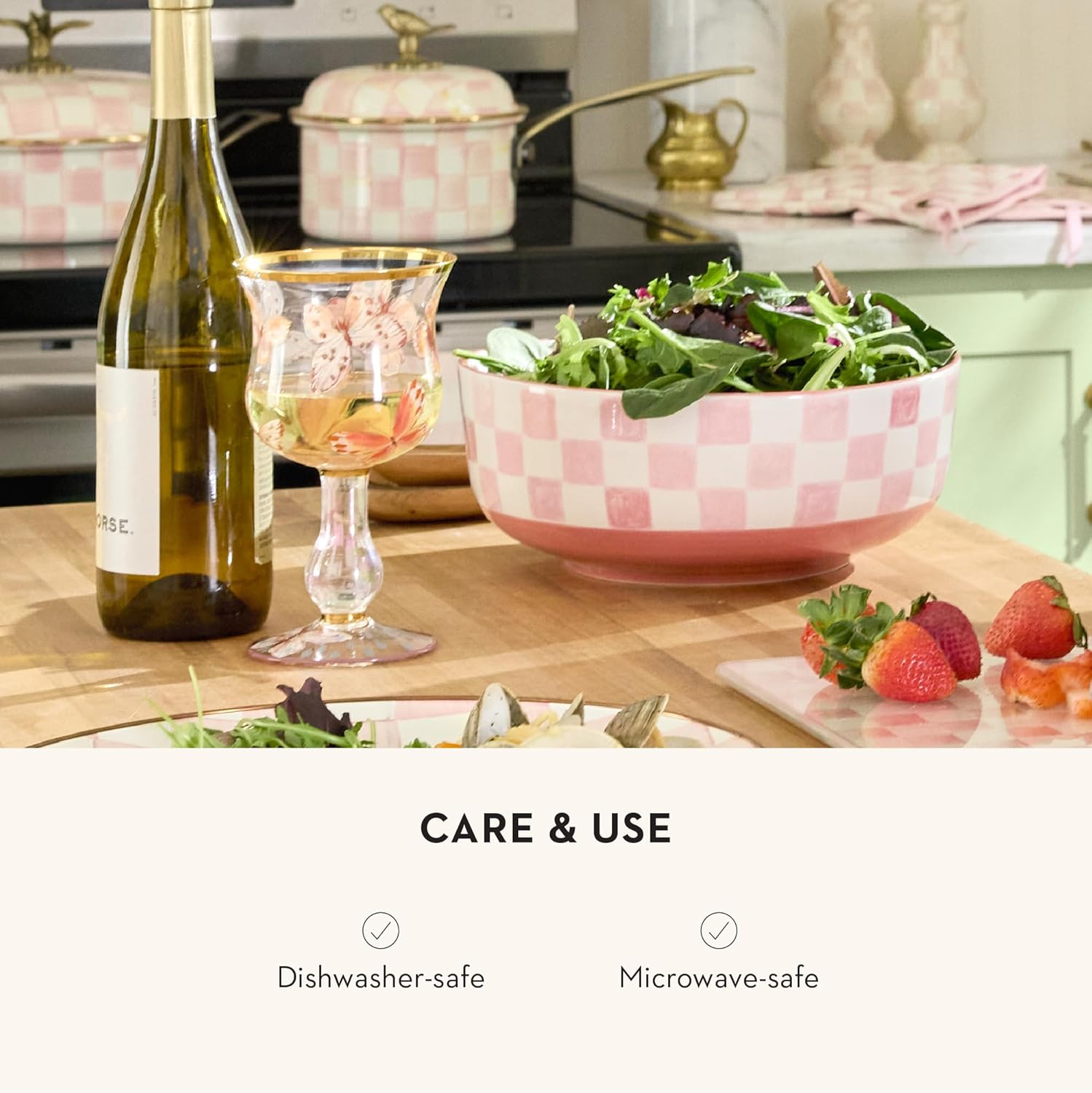• ENTERTAINING ESSENTIAL: Set a fresh and fun table with this cute Pink Check dish. It is made of dishwasher- and microwave-safe stoneware, decorated with hand-applied pink check transfers, and finished with a hand-painted rim.