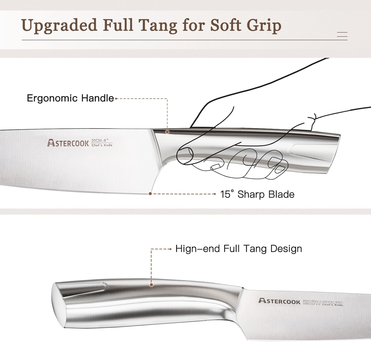 • 【COMFORTABLE FULL-TANG HANDLES FOR CONTROL】Each kitchen knife features a full-tang handle with balanced weight and a secure grip. Whether you’re slicing, chopping, or mincing, these knives feel solid in hand and help reduce wrist fatigue—true comfort meets performance.