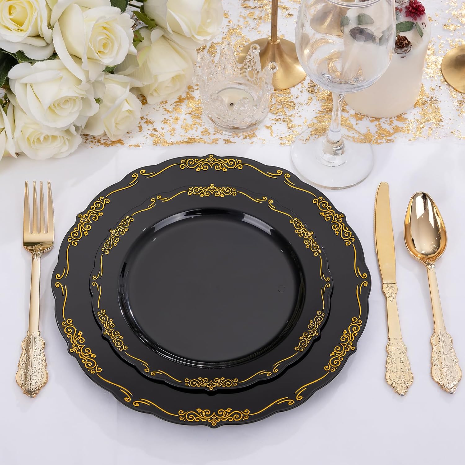 • Versatile Use:These black gold plates are simple yet elegant, making them a must-have for your kitchen or party supplies. Perfect for Halloween, weddings, birthdays, holidays, baby showers, and casual gatherings, they complement any theme or decor. black and gold plates design ensures they blend seamlessly with any table setting, making them a versatile choice for all your entertaining needs.