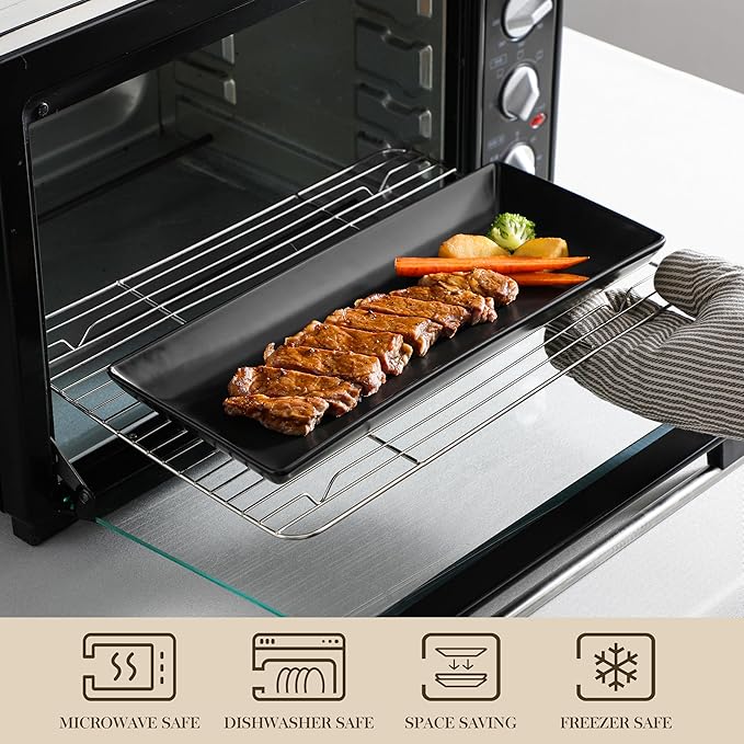 • Sturdy and Stable: Our 14-inch serving tray stand comes with 3 layer sturdy metal stand with three of white rectangular ceramics trays, providing ample space to elegantly present your food and desserts, The black metal rack is robust, and stable,foldable, allowing to flexibly adjust angles and convenient access to food. Our tiered platter stands firm while holding your favorite delicacies. Whether it’s delicate pastries or savory bites, rest assured the serving stand will make your display secure and eye-catching.