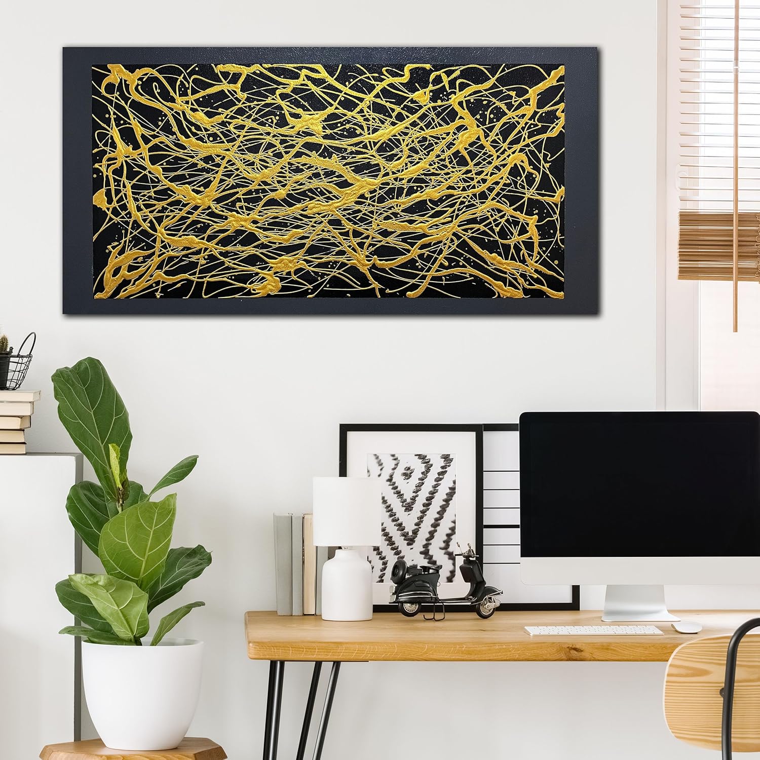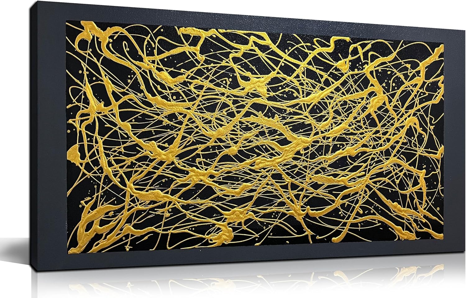 • 【black and gold abstract Canvas Mural Size 】The size is 40" x 20". Since each painting is hand-painted, 3D textured canvases, the actual painting may differ slightly from the product image. Due to different monitor brands, the actual wall painting color may be slightly different from the product picture.