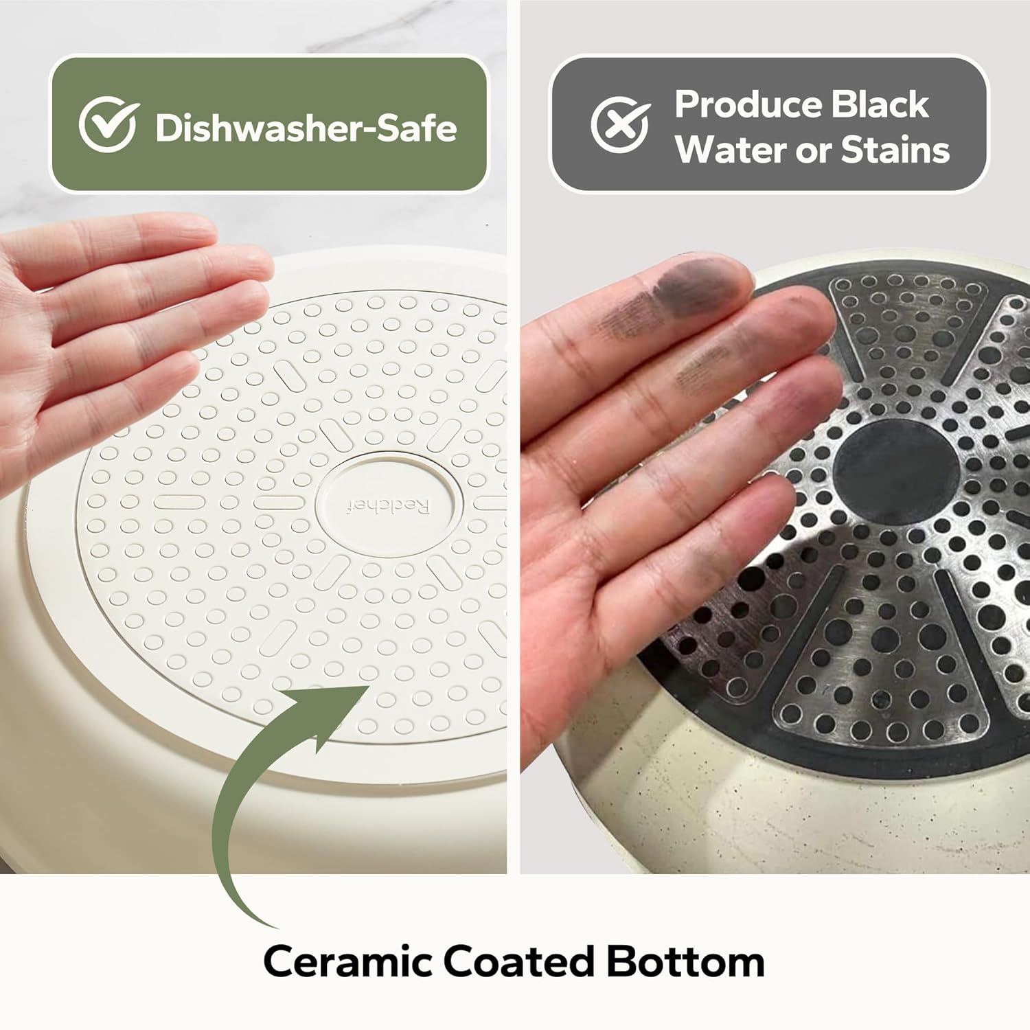 • Non-Toxic Ceramic Coating: Redchef's PTFE/PFOA/PFAS-free ceramic coating ensures healthy, worry-free cooking. Eggs and steaks glide off effortlessly, while the healthy design prioritizes daily meal safety—‌combining the scratch-resistant durability of ceramic frying pans with the trusted smoothness of premium nonstick frying pans