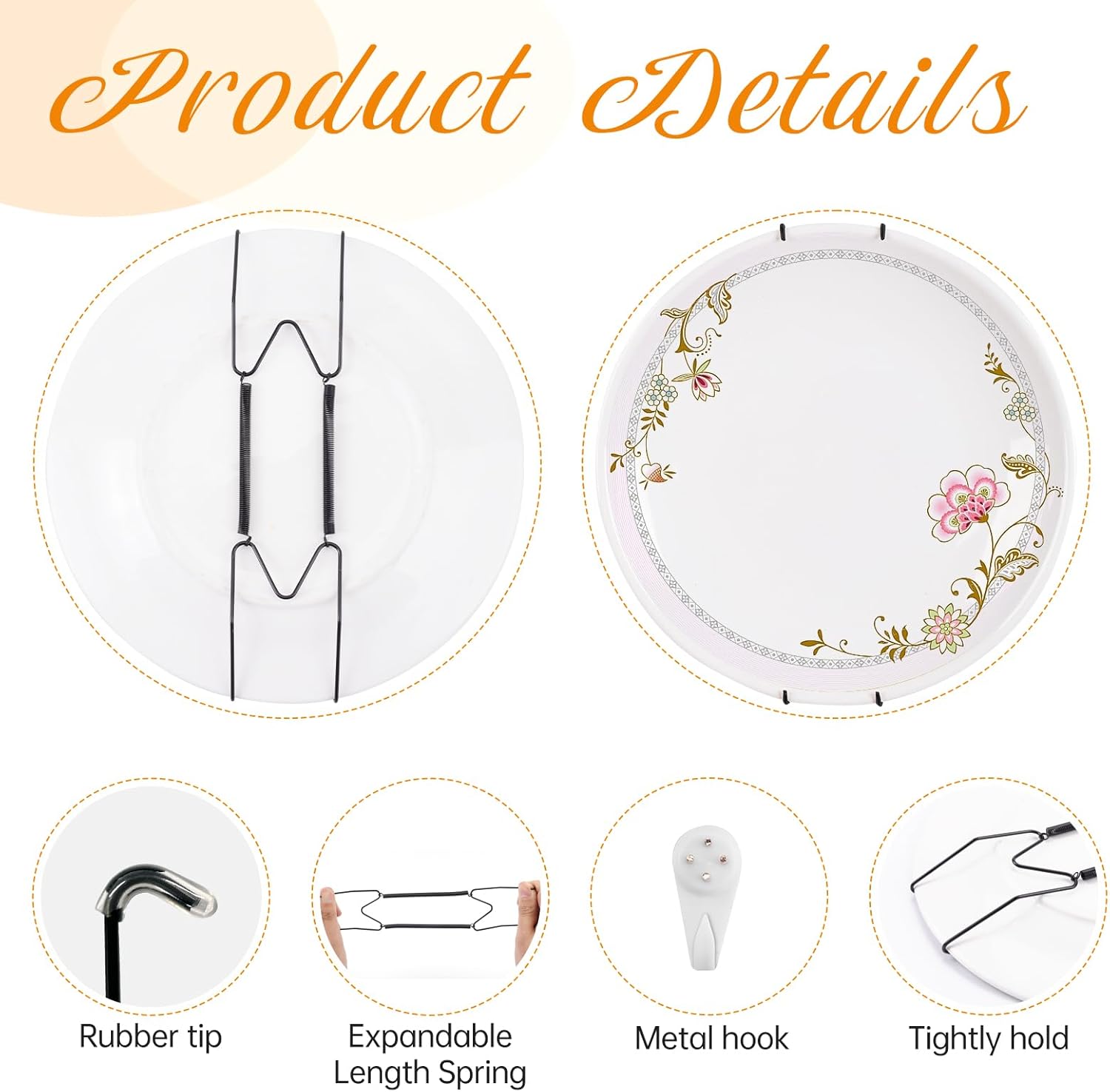 • Rubber Tip Protectors: These plate hangers come with rubber tip protectors, which help protect your plates' rims from scratches and damage, ensuring a safe and secure display.