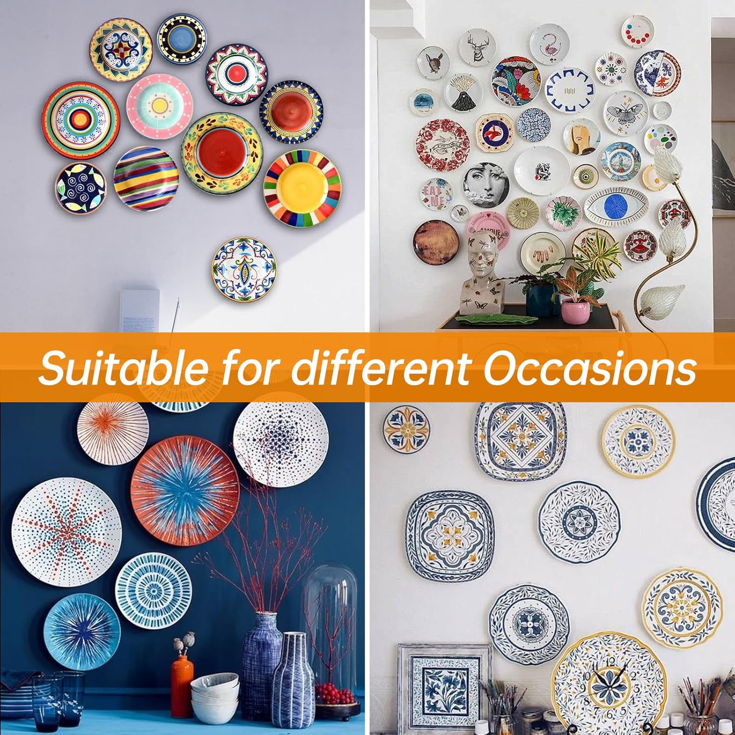 • Package Inclusion: Our package includes 1 wall plate hangers, 1 wall hooks, 4 rubber tip protectors, 1 instruction, fit for holding 8-10 inch round or square plates. You can create a variety of arrangements to decorate your plates to fully meet your hanging and display requirements.