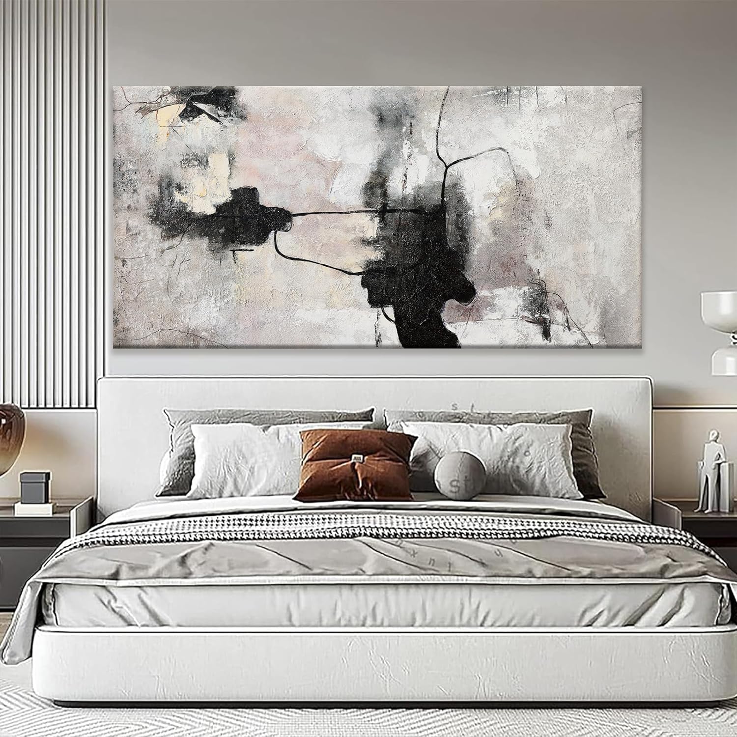 QSQ Black And Off-White Large Abstract Wall Art For Living Room Decor Grunge Room Decor Art Canvas Art Wall Decor 29" X 58" Painting Wall Art For Bedroom Home Office Artwork