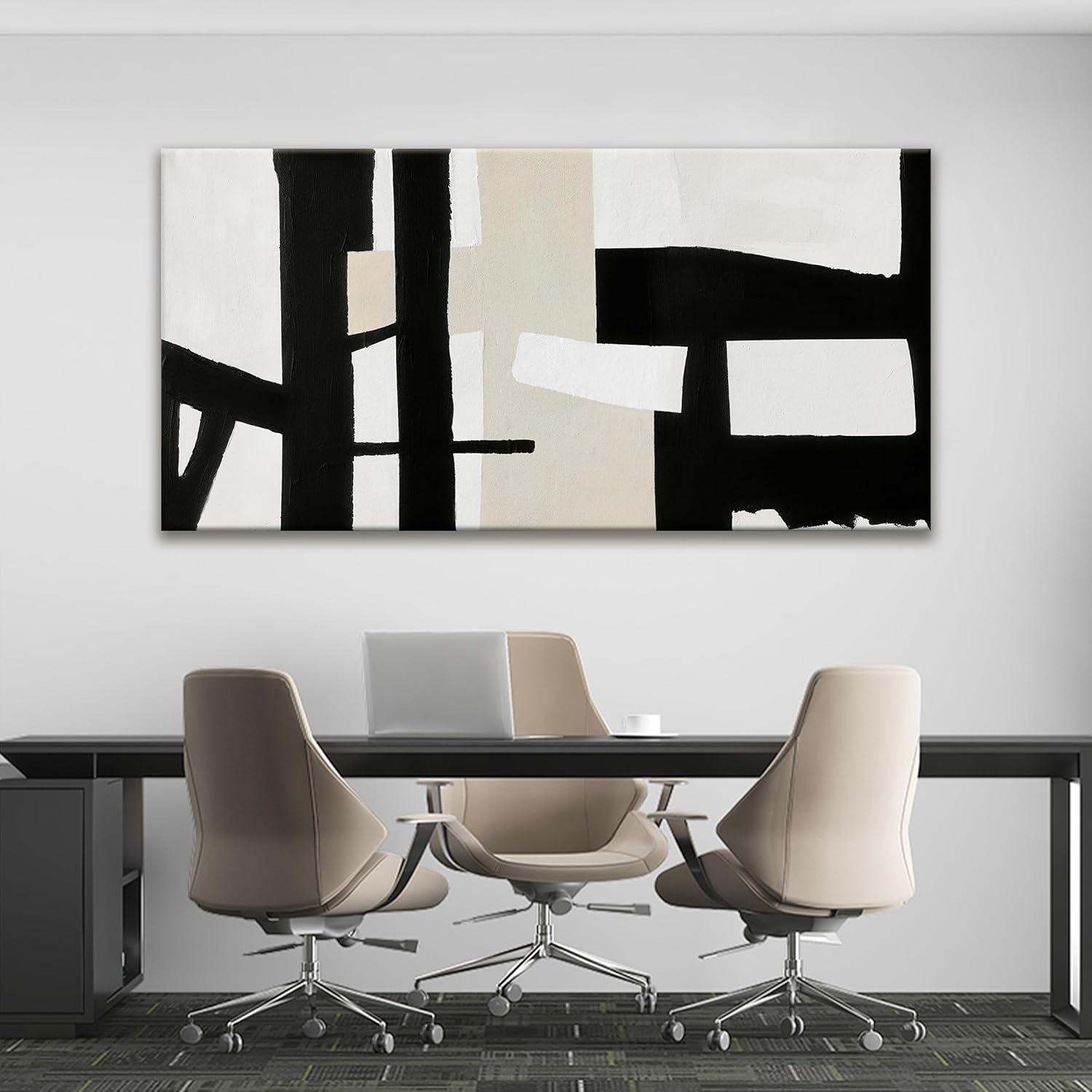 QSQ Large Abstract Wall Art, 29 x 58 Inch, Modern Painting, Black White, Living Room, Office, Bedroom Decor