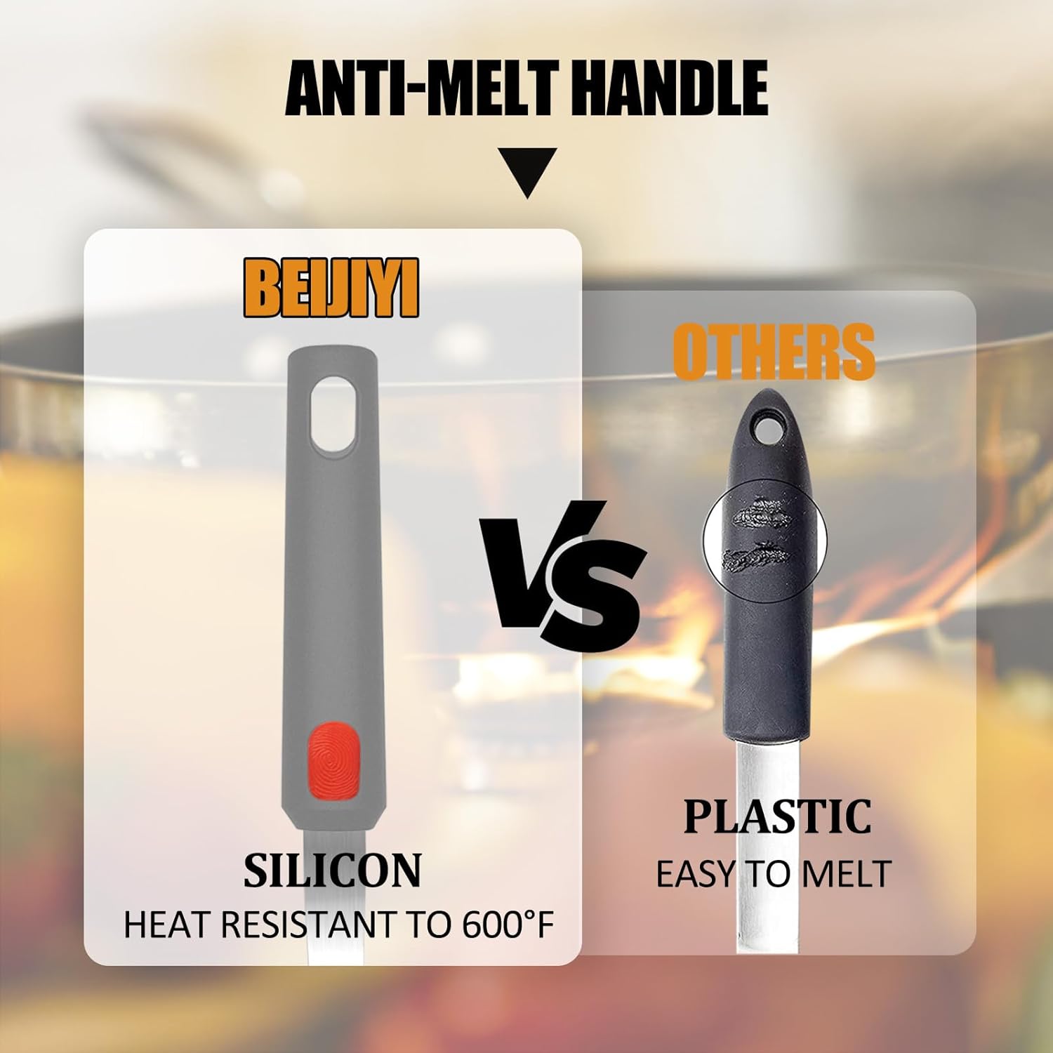 • Comfortable Silicone Handle: The sturdy stainless steel core with thickened silicone handle fits the palm better, making the grip more comfortable and firm, and effectively nonslip and insulates heat