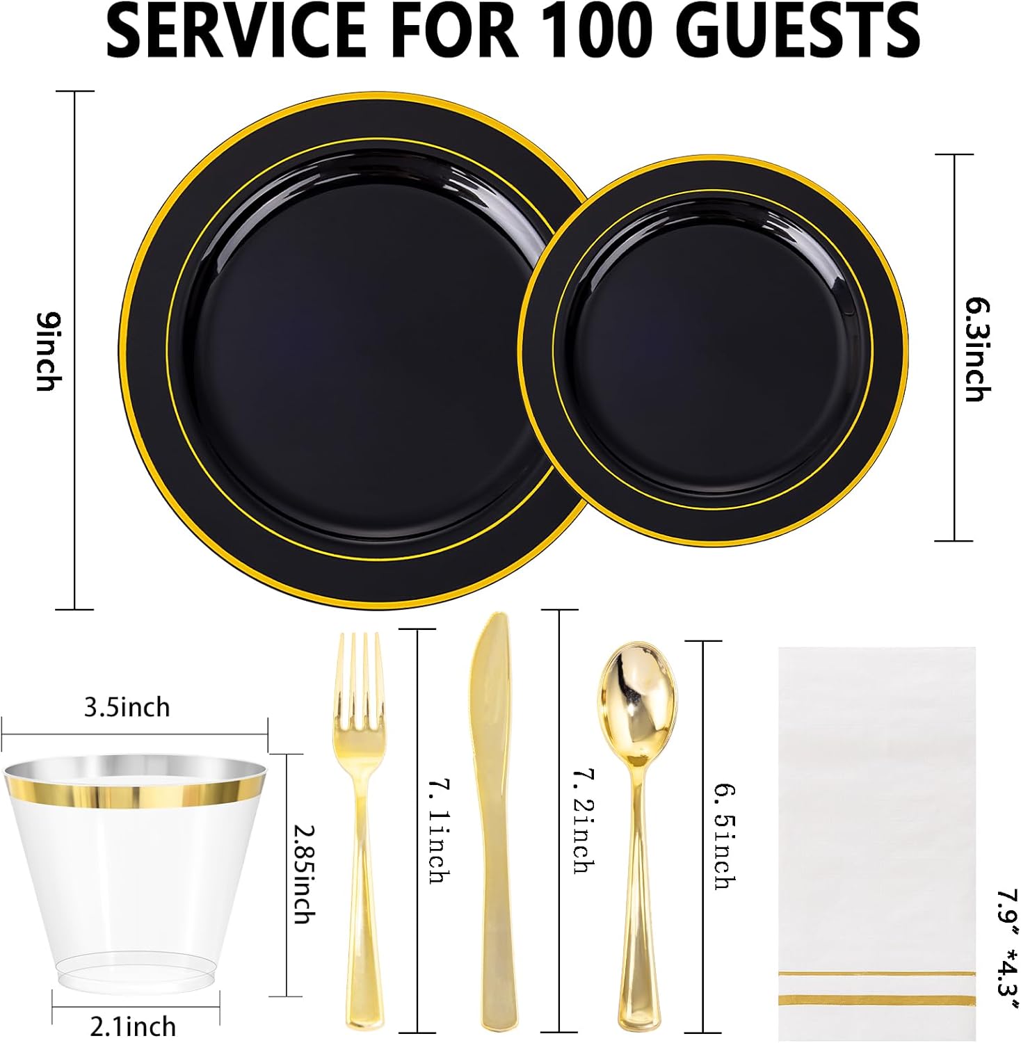 • Great Value: Although intended for single-use, these black disposable plates offer a cost-effective alternative compared to traditional porcelain. Catering to gatherings of up to 100 guests, our black plastic plates include black dinner plates and dessert plates, knives, forks, spoons, tissues, and cups, ensuring every guest has everything they need for a delightful dining experience.