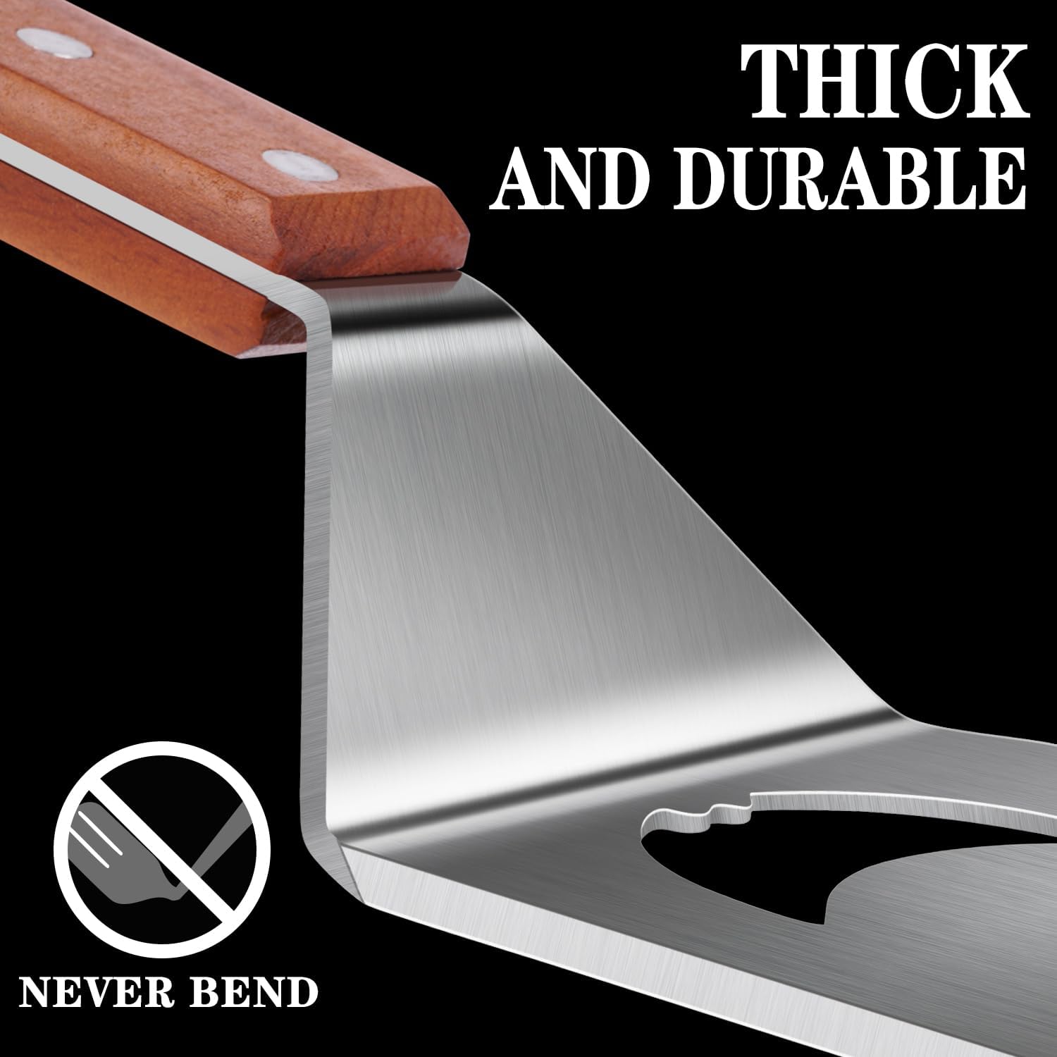 • 【Heavy Duty Stainless Steel】Apart from the wooden handles, our spatula are made of heavy duty stainless steel. The thickness and toughness of the scraper are far superior to similar products, ensuring that it is not easy to bend, absolutely thick and durable, and avoiding the embarrassment of giving inferior gifts to others