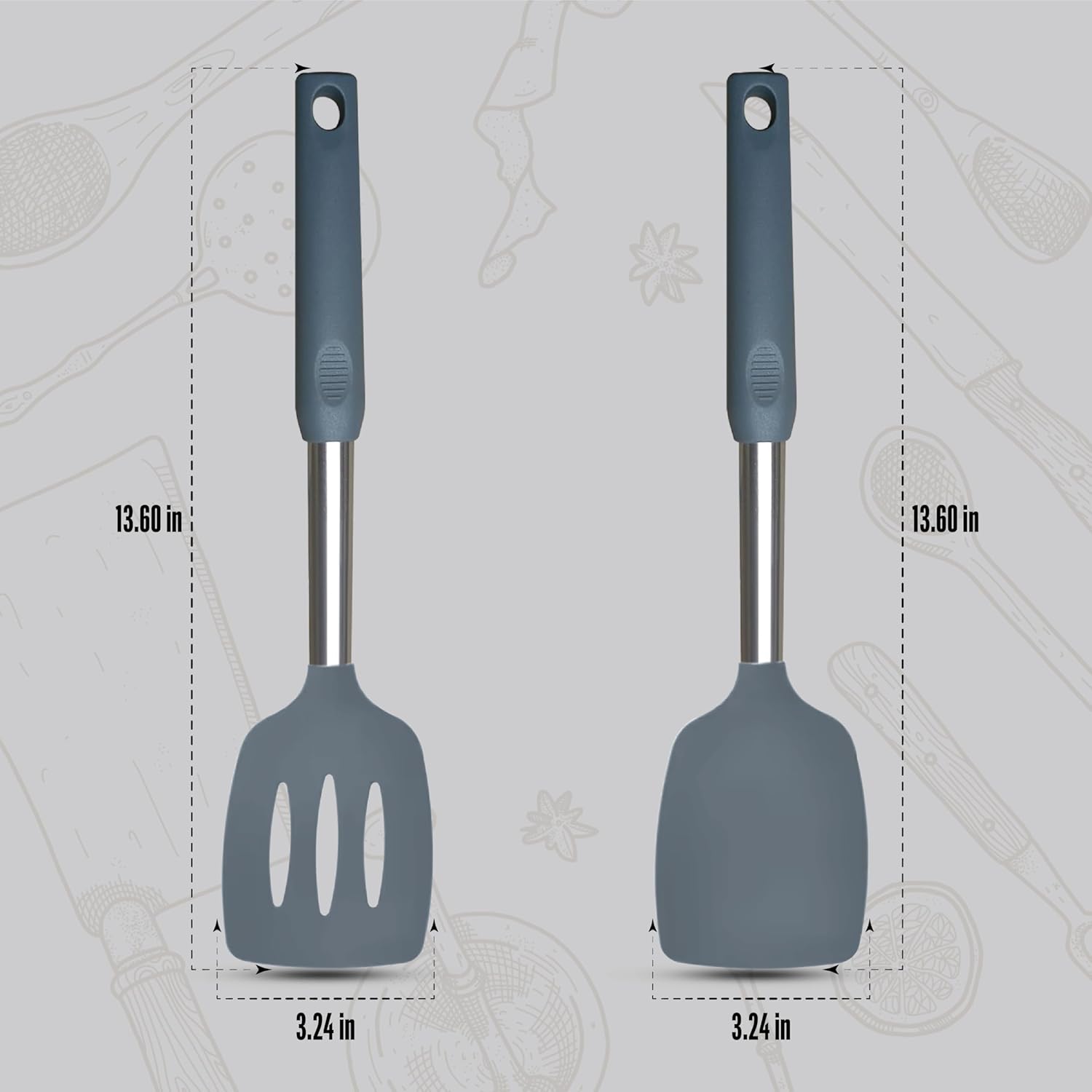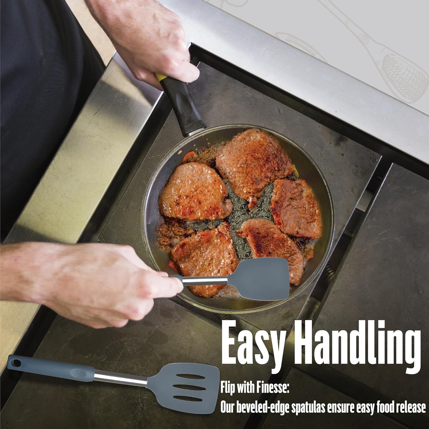 Silicone Spatulas set for kitchen use : Heat Resistant Turner & Slotted Silicone Spatula for Cooking, Non Toxic Kitchen Utensils, Ideal kitchen spatula turner for Eggs & Pancakes (Gray)